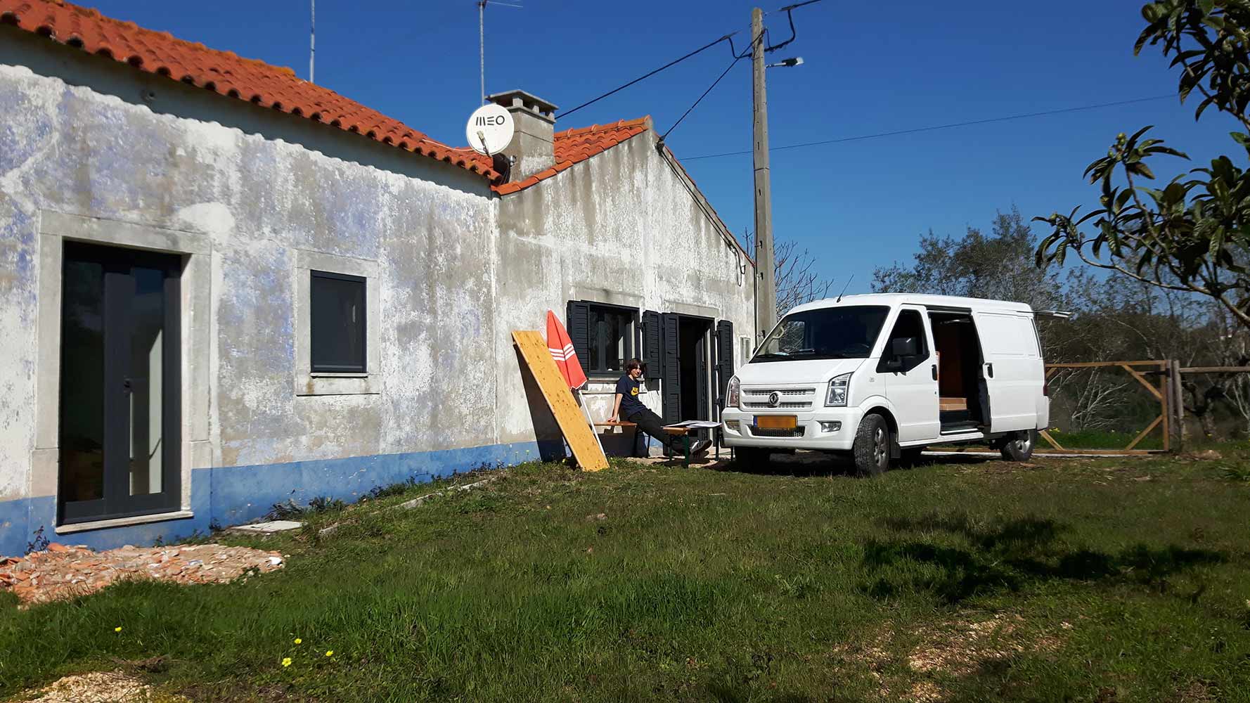 Gisteren aangekomen met een bus vol van alles.Vanmorgen Marijn opgehaald op het vliegveld in Lissabon, en nu aan het uitpakken in de zon. Het is winter en heerlijk weer.