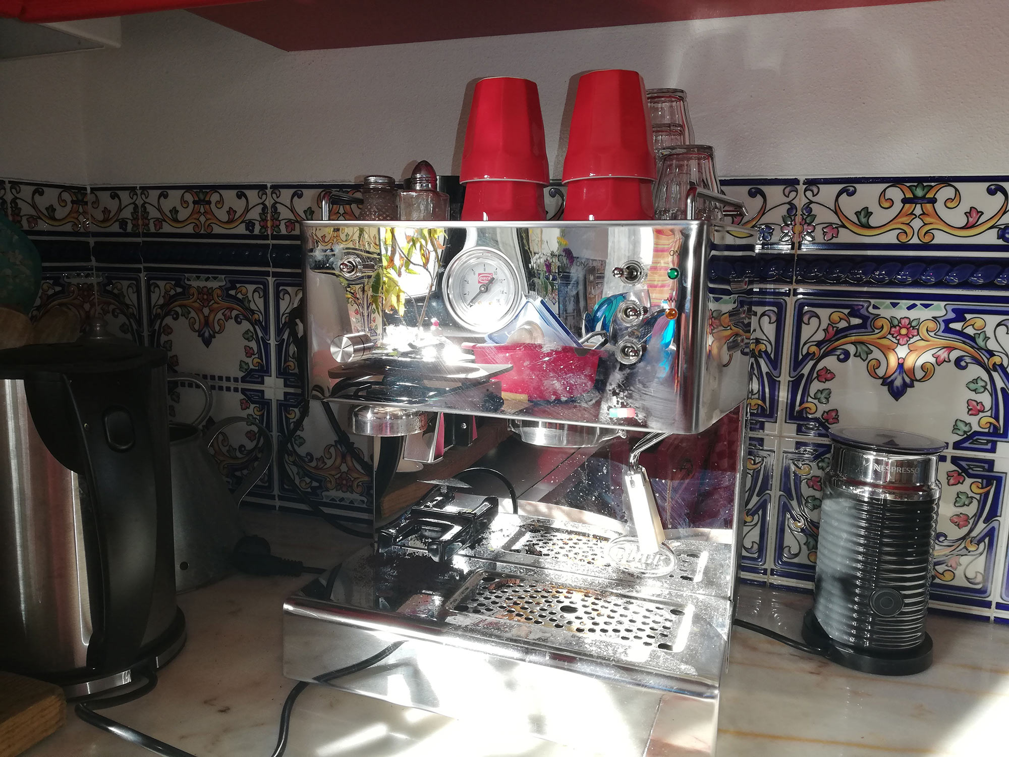 Wat een verademing! Na een reis van een week, met zo-zo-koffie weer eens een goede kop van eigen makelij. Kunnen we weer latte macchiato en espresso’s maken. Het wordt al een echt thuis!