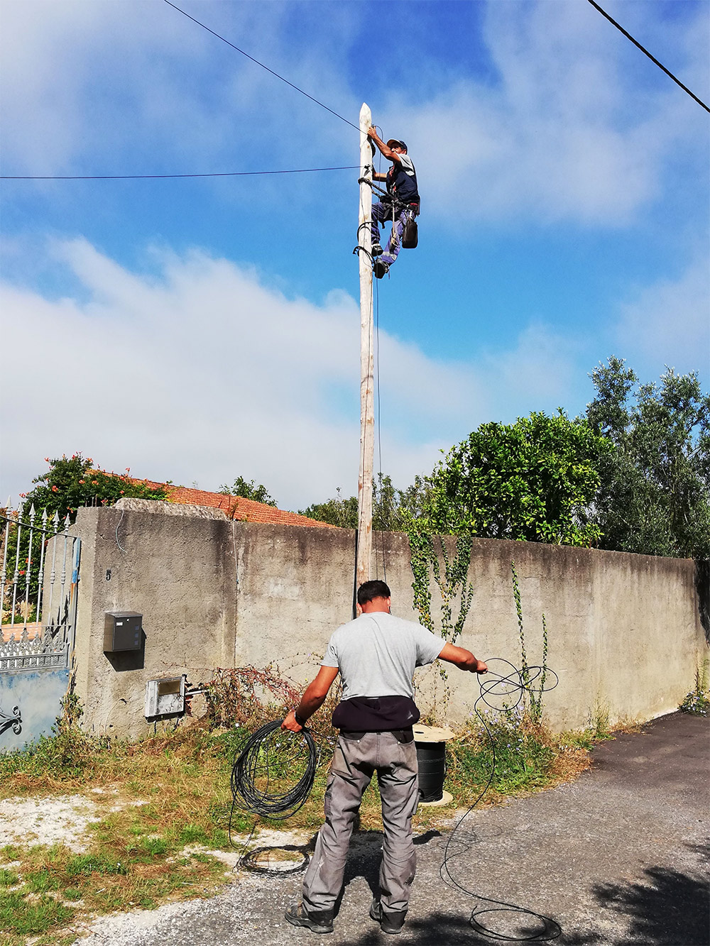 Op het afgesproken tijdstip wordt het internet aangelegd. Zaterdag waren de palen al geplaatst. Vanochtend is de glasvezelkabel opgehangen en vanmiddag het modem geplaatst en aangesloten. En alles werkt. Razendsnel internet! We hebben ook 200 TV kanalen, alleen geen TV. 🙂