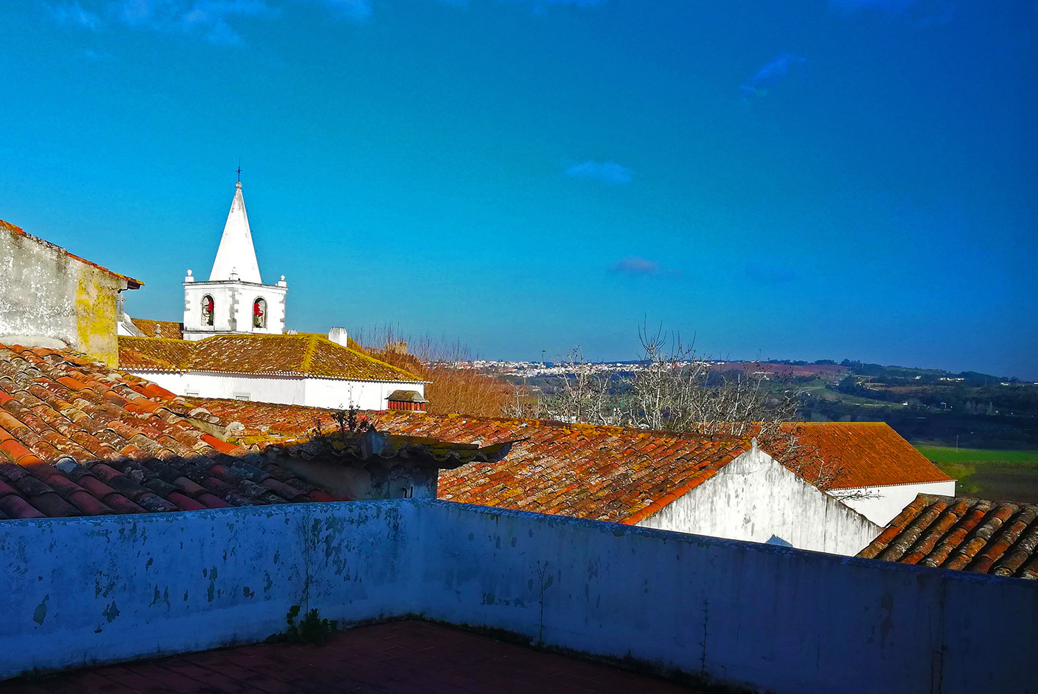 Óbidos is een stad vlakbij. Al deden we via de toeristische route er bijna een uur over om er heen te gaan. Via prachtige weggetjes, langs leuke dorpjes, langs perenboomgaarden. Heel mooi. Óbidos zelf was heel druk, de stad is helemaal in kerstsfeer, dus daar kwamen ook heel veel mensen op af. ’t Gekke is, dat als je de hoofdroute mijdt dat je dan allerlei prachtige schilderachtige doorkijkjes tegenkomt. Steile straatjes, gladde stenen, kleine huisjes, piepkleine tuintjes, sommige heel goed bijgehouden, andere weer helemaal niet, wat ook weer zo zijn charme heeft; en… helemaal niet druk, af en toe geen mens te bekennen.