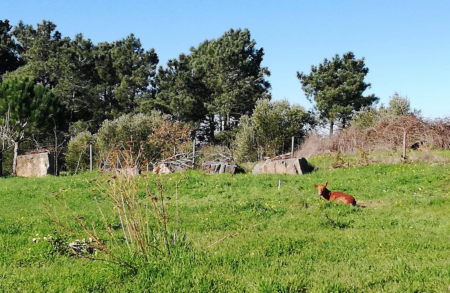 Lourdes Maria gaat elke ochtend naar haar vaste plek op het land. Ze zit natuurlijk aan een koord waardoor ze een mooie magische cirkel maakt. Het valt mee hoeveel ze eet. We hadden gedacht dat ze de cirkel wel gauw kaalgevreten zou hebben maar dat is niet zo. Ze staat nu een week op dezelfde plek en het is nog niet kaal. (’s Nachts gaat ze wel naar binnen natuurlijk!) Als ze genoeg gegeten heeft gaat ze rustig liggen en dat ziet er erg vredig uit. Een mooi plaatje, zo’n rustige geit in een glooiend stuk wei.