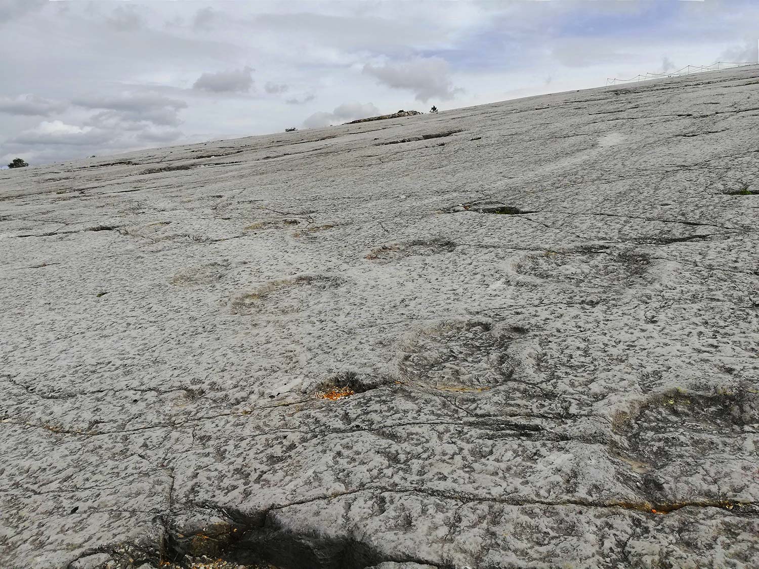 Erg spectaculair. Je kunt de sporen van bovenaf erg goed zien en als je over de vlakte loopt kun je ze aanraken, zo dichtbij. Je kunt zelfs de afdrukken onderscheiden van de voorpoten en de achterpoten.