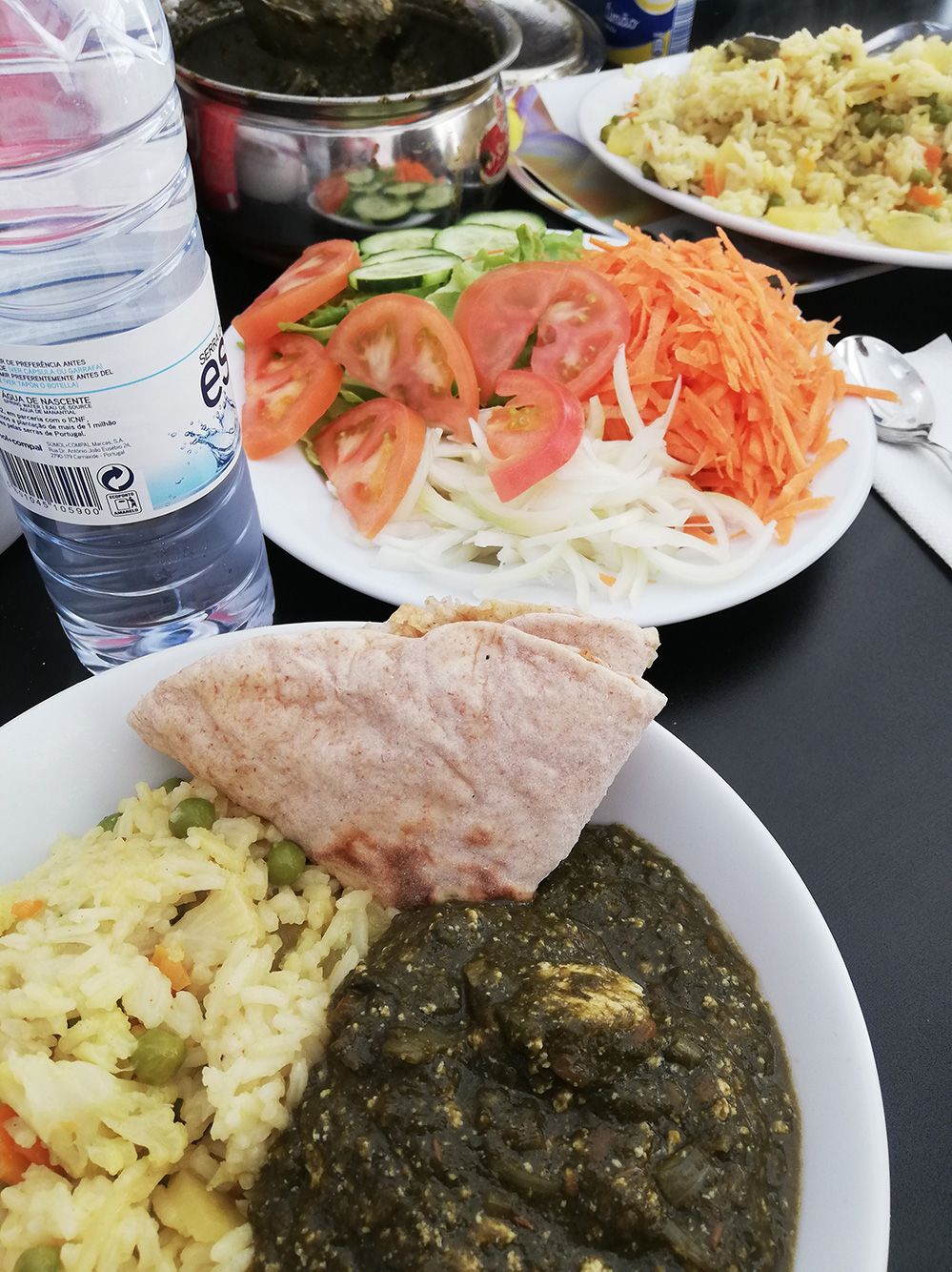 Op donderdag gaan we altijd eten bij een Indiaas restaurant. Eigenlijk is het helemaal geen Indiaas restaurant, het is een King Kebab waar je döner en kapsalon kunt halen enzo. Dat zit zo: Betty ging er een keer eten en kwam in gesprek met de Indiase eigenaar en eigenaresse die de zaak pas hadden overgenomen. Ze vroeg of de eigenaresse, Bijote, ook Indiaas kon koken. Nou dat kon ze, de afspraak werd gemaakt, er werd gegeten en dat beviel zo goed dat het elke donderdag werd. En zo werd een traditie geboren. Elke donderdag om ongeveer kwart over één schuiven we aan en staat er een heerlijke Indiase maaltijd klaar. Rijst met heerlijk kruidig gekookte groente en chapati. Onwijs lekker.