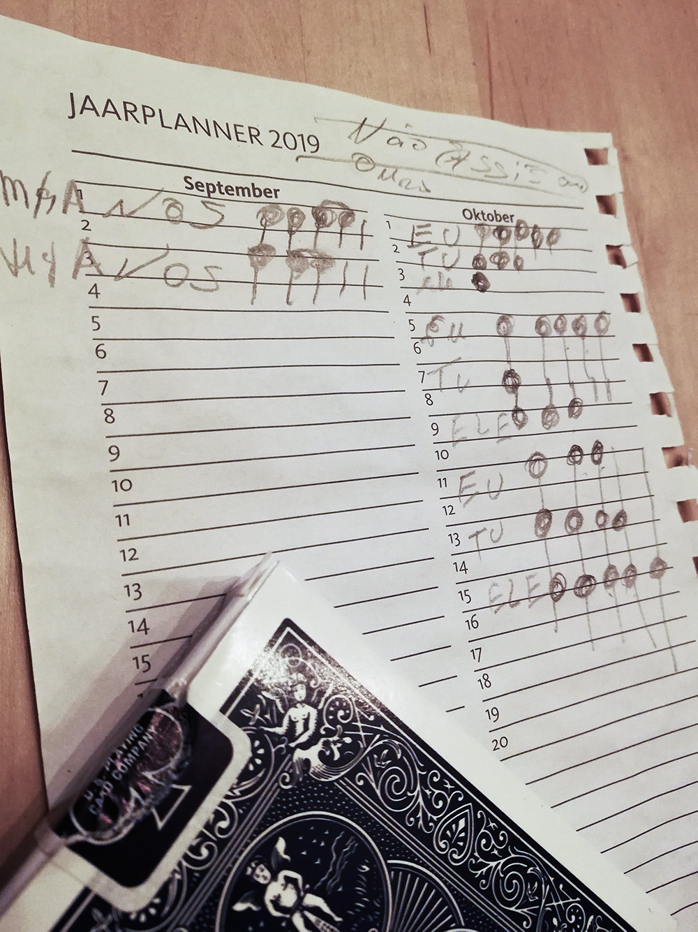 Vandaag een marathon gespeeld. We hadden de buurman uitgenodigd om te komen eten. Hij was hier om half een voor de hachée. Gezellig met zijn vieren aan tafel. Marijn is vandaag begonnen met zijn stage en de eerste dag was introductie, hij hoefde pas om half drie te beginnen, dus voor hem een rustig begin. Na het eten gingen we kaarten. Sueca. Dat is een Portugees spel dat veel weg heeft van klaverjassen. De aas is het hoogst, dan de zeven, dan de heer, dan de boer en dan de vrouw. Ik heb gelezen dat in Portugese kaartspelen de boer meestal hoger is dan de vrouw, doordat de boer een ridder representeert en de vrouw een huismeid. Het is maar dat je het weet. We hebben uiteindelijk de hele middag gespeeld, buiten op het terras. We kregen wel één keer een regenbuitje, maar dat was niet noemenswaard. De parasol moest erbij gehaald worden, zo warm was de zon, terwijl het toch flink afgekoeld was.