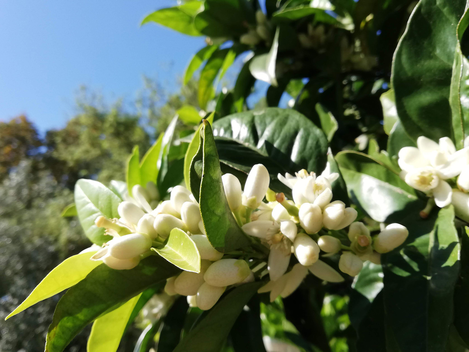 De ene soort is nu stevig vruchten aan het dragen; de andere is net in bloei. Vorige week hadden we nog sinaasappeloogst van het land van een van de buren. Die bomen hebben nog steeds heel veel vruchten; die van ons is nu stevig aan het bloeien. Er komen prachtige bloemen aan en ze geuren geweldig. Alsof de hele tuin vol staat met glazen Cointreau. Onze boom staat vlakbij een stuk waar ook veel munt staat, en die twee geuren samen geven een bijna bedwelmend effect. Het is vandaag een stuk kouder dan afgelopen zaterdag, maar met de zon erbij mogen we nog steeds niet mopperen. En regenen heeft het vooral ’s nachts gedaan, dus dat is helemaal een kadootje.