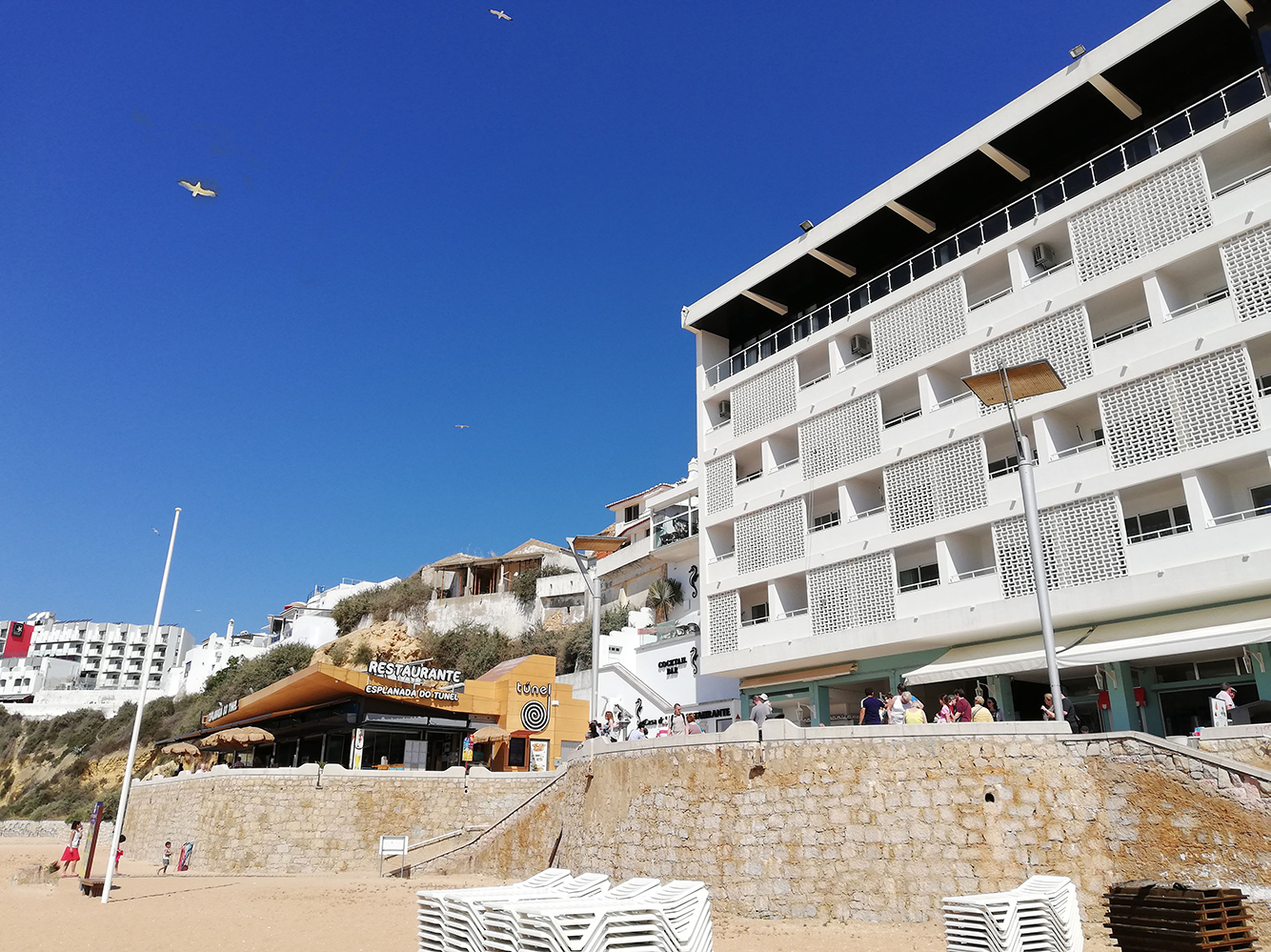 Weekend Albufeira in de Algarve. Gematigd positief. Albufeira is een vakantieplaats bij uitstek. Van het oorspronkelijke vissersdorp is zo goed als niets meer over. Het dorp is overgenomen door eethuisjes, souvenirshops en trendy winkeltjes. Erg gericht op Nederlanders en Engelsen. Overal wordt full English breakfast aangeboden. Er is een bruin café, Holandia, er zijn Ierse pubs en pubs waar je vier voetbalwedstrijden uit de Engelse competitie tegelijkertijd live kunt volgen. De buitenkanten van het dorp zijn volgezet met hotels en appartementen om alle vakantiegangers te huizen. Op een terras wordt uitsluitend Engels gesproken, het personeel is bijna allemaal van buitenlandse komaf; heel veel Nepalezen. Albufeira is ideaal als je veel wilt eten en drinken en op het strand liggen.