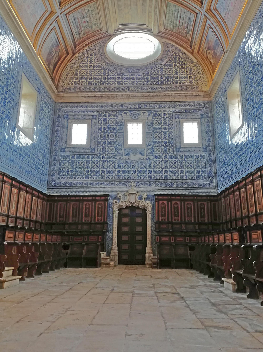 In de sacristie zijn alweer in blauwe tegels, belangrijke gebeurtenissen in het leven Sint Bernard uitgebeeld, de patroonheilige van de stad Alcobaça. In Alcobaça is trouwens ook een prachtig klooster. Die in Cós is voor de nonnen geweest, en die in Alcobaça voor de monniken. Allebei van de Cisterciënzers.