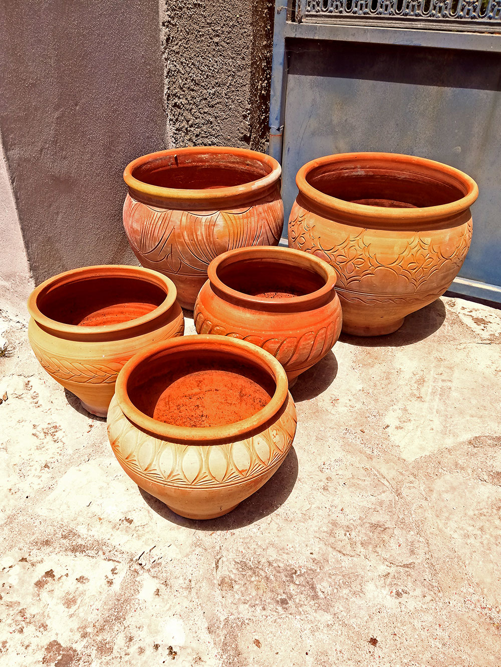 Op de kop getikt! Een mooie verzameling terracottapotten van verschillende grootte. Ze zijn tweedehands, en dat maakt ze eigenlijk charmanter.