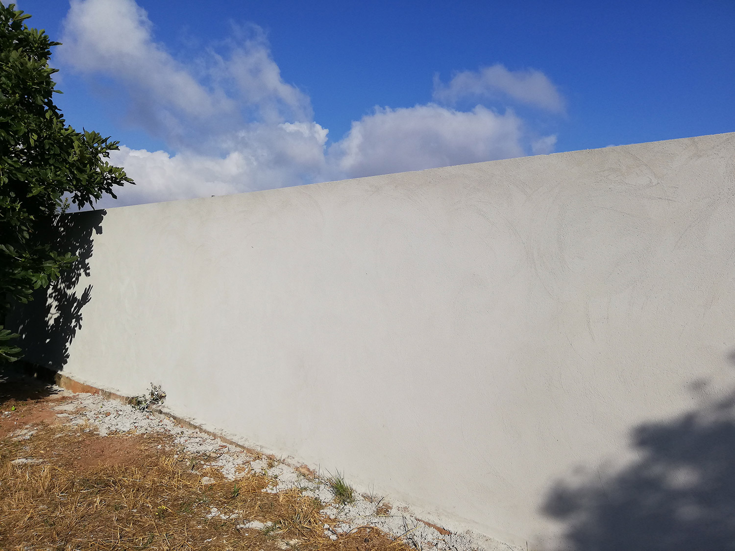 De achtermuur is klaar. Ilídio heeft fantastisch werk geleverd. Knap hoor om zo’n lengte aan muur glad te krijgen. Het is niet glad als een binnenmuur, maar het heeft het mooi ruwe van een buitenmuur. Aan ons de eer om die straks te verven. Het is wel jammer dat de kiwi’s die tegen de muur aan stonden weg moesten. Het is de tweede keer dat ze verplaatst moesten worden, en waarschijnlijk wordt deze klap te veel. Ze waren al eerder verplaatst omdat we het plan voor de moestuin veranderd hebben, daar is nu het terras, en daarom hadden ze het erg moeilijk, er is een goeie kans dat ze het niet overleven, gezien de temperatuur en de droogte.