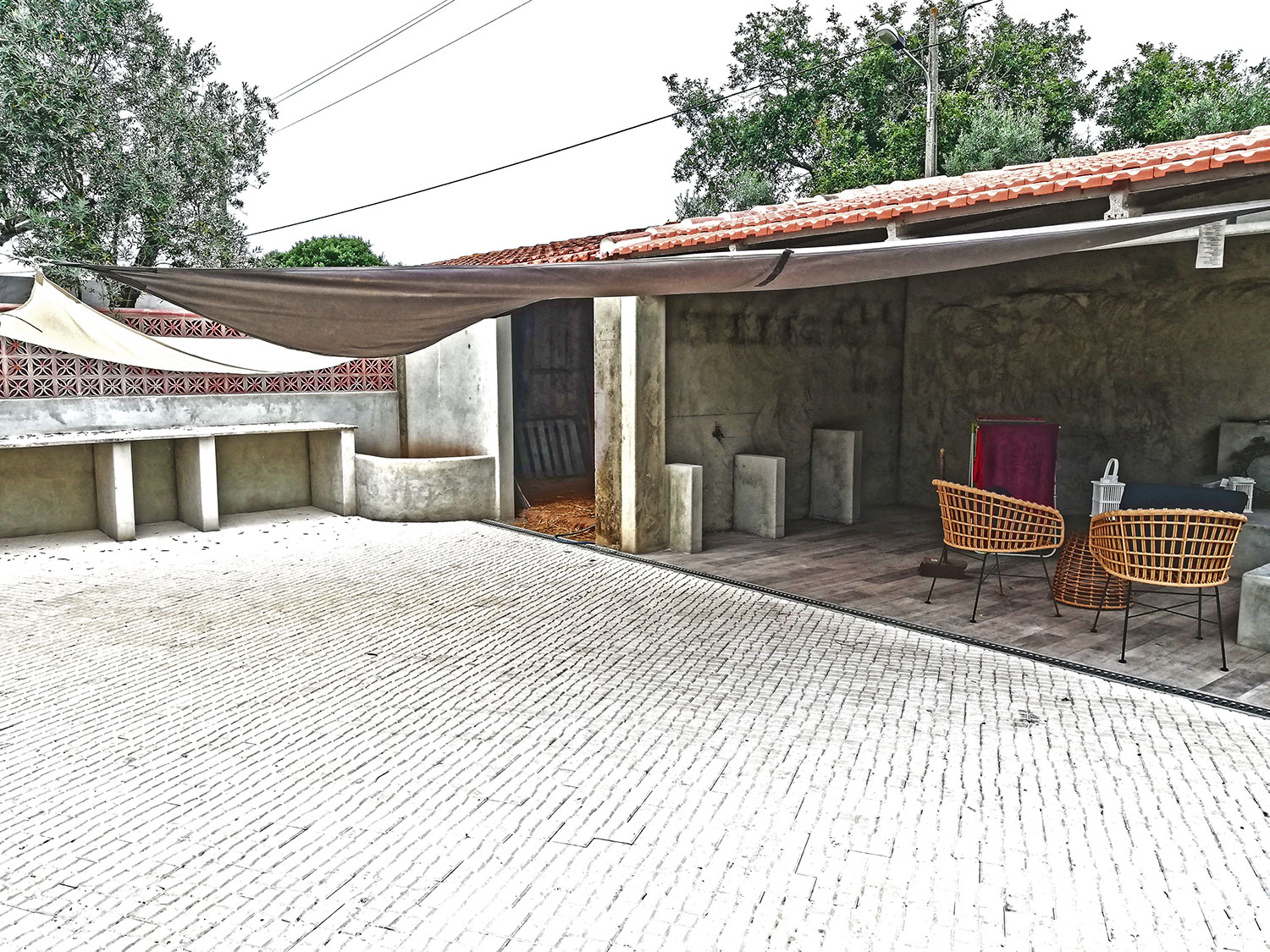 Klaar! Tenminste voor zover het de mannen betreft. Het heeft even geduurd, maar dan hebben we ook wat. Het zou oorspronkelijk twee weken zijn, maar de plannen werden steeds uitgebreider en er zijn ook wel wat kleine misverstanden geweest. En de tegels die we hebben uitgezocht zijn ook een stuk bewerkelijker dan waar aanvankelijk rekening mee gehouden was. Al met al ging op 22 mei de eerste spade de grond in, om de aarde af te voeren (met de hulp van Pieter!), en vandaag is de laatste hand gelegd. Voorlopig dus even afscheid van de mannen. En wij kunnen alvast genieten van het terras en de alpendre.