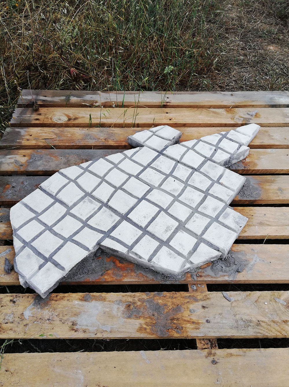 Nu de mannen klaar zijn, zijn wij aan de beurt. Het eerste wat moet gebeuren is de calçadas portugueses voegen. Hiervoor zijn we naar de tegelwinkel in Benedita geweest om het voegsel te halen. Was nog even hilarisch want de man zei in eerste instantie dat het tot eind augustus zou duren voordat het geleverd kon worden. ‘Ja, weet u het is niet zo’n grote hoeveelheid en we gaan in de zomer ook nog een paar weken dicht, dus dat duurt wel even.’ Het bleek dat hij dacht dat we de tegels zelf moesten hebben en niet het voegsel. Dat hadden ze gelukkig wel in voorraad.