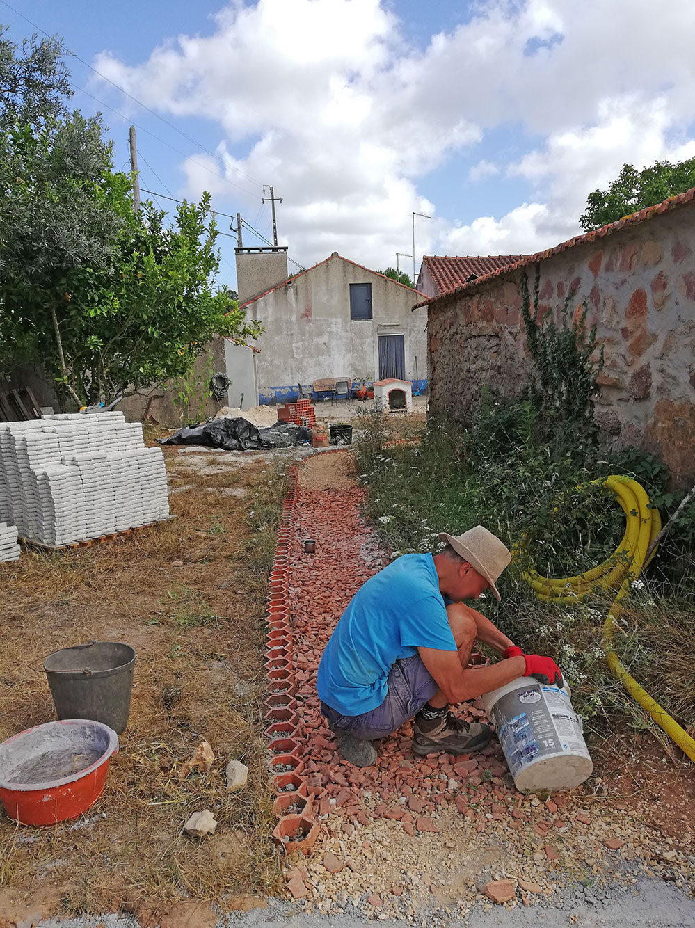 We zijn ook begonnen met de stenen langs het al bestaande pad te vullen met cement, om een beetje stevigheid te creëren.