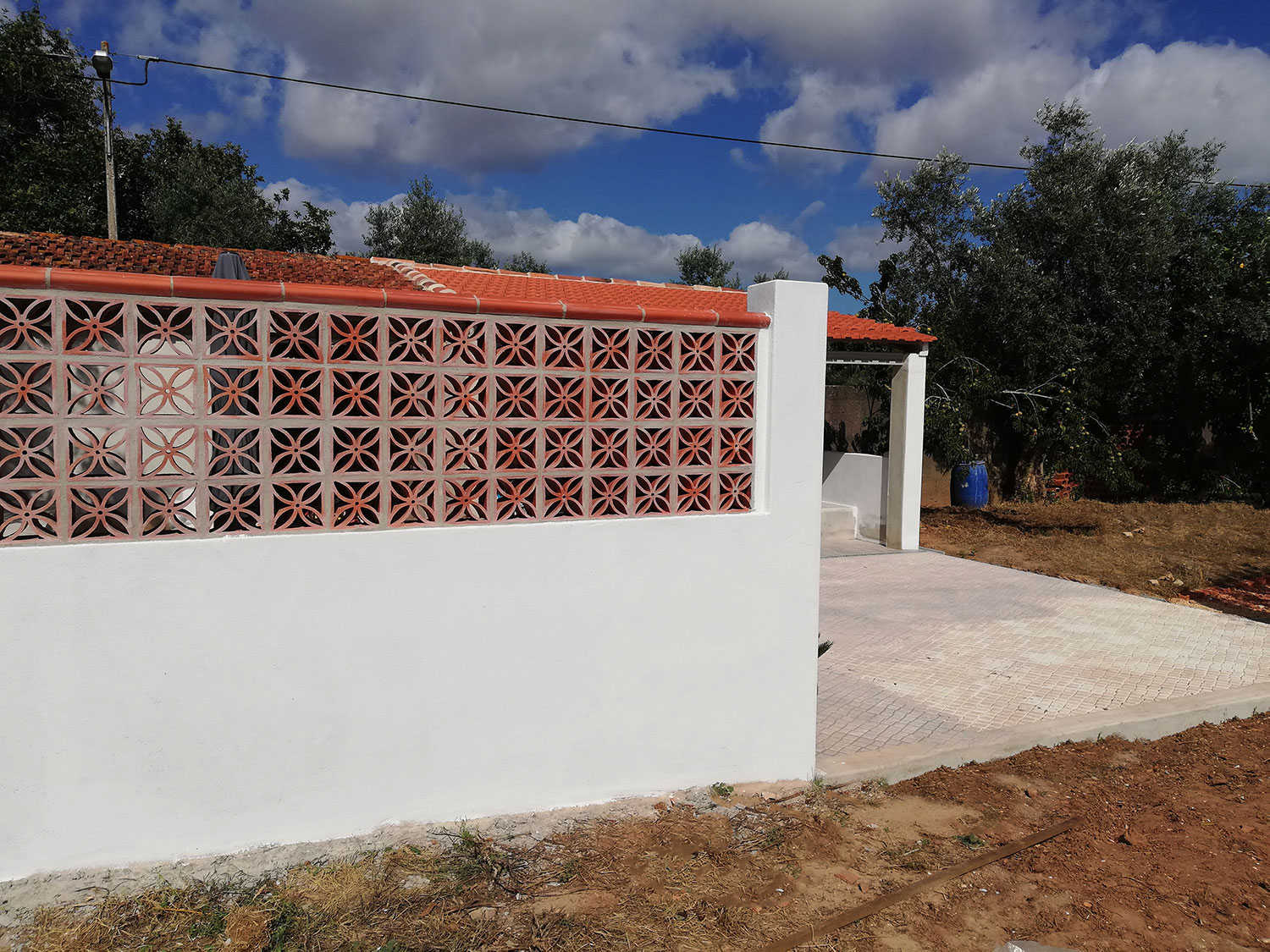 Met de hulp van Jan, onze vrijwilliger, zijn we vandaag aan het witten geslagen. Alles wat Joaquim en Ilídio hebben gemaakt van cement wordt in de primer gezet. De definitieve kleur moet nog bedacht worden, maar met de primer knapt het al erg op. Jan is wat langer dan wij dus hij kan goed bij de bovenkanten van de muren. Met de extra handen schiet het lekker op. We zijn nog niet klaar, maar aan het eind van de dag is de emmer van 15 liter leeg. De lange muur is gedaan en alle buitenkanten. Van het terras zijn de bloembakken gedaan en de muur van de pottafel. Morgen gaan we de rest doen.