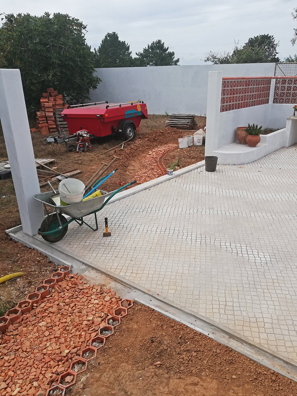 We werken gestaag door aan het pad. Het gedeelte tot aan het terras is nu in zoverre klaar dat we het kunnen inlopen. Over een tijdje komt er de definitieve laag op. We zijn nu begonnen aan het gedeelte na het terras tot aan het stalletje. Hiervoor moeten we een beetje omhoog en door een soort van bult heen. Die bult moeten we dan eerst afgraven, en met het spul dat er vanaf komt kunnen we dan mooi de kuilen vullen. Dat afgraven is nu wel een klus want de grond is keihard door de droogte van de afgelopen dagen. In de grond komen we zoals gebruikelijk veel stukken dakpan tegen en dat kunnen we dan mooi gebruiken voor de eerste laag. Praktisch en het ziet er nog gezellig uit ook.