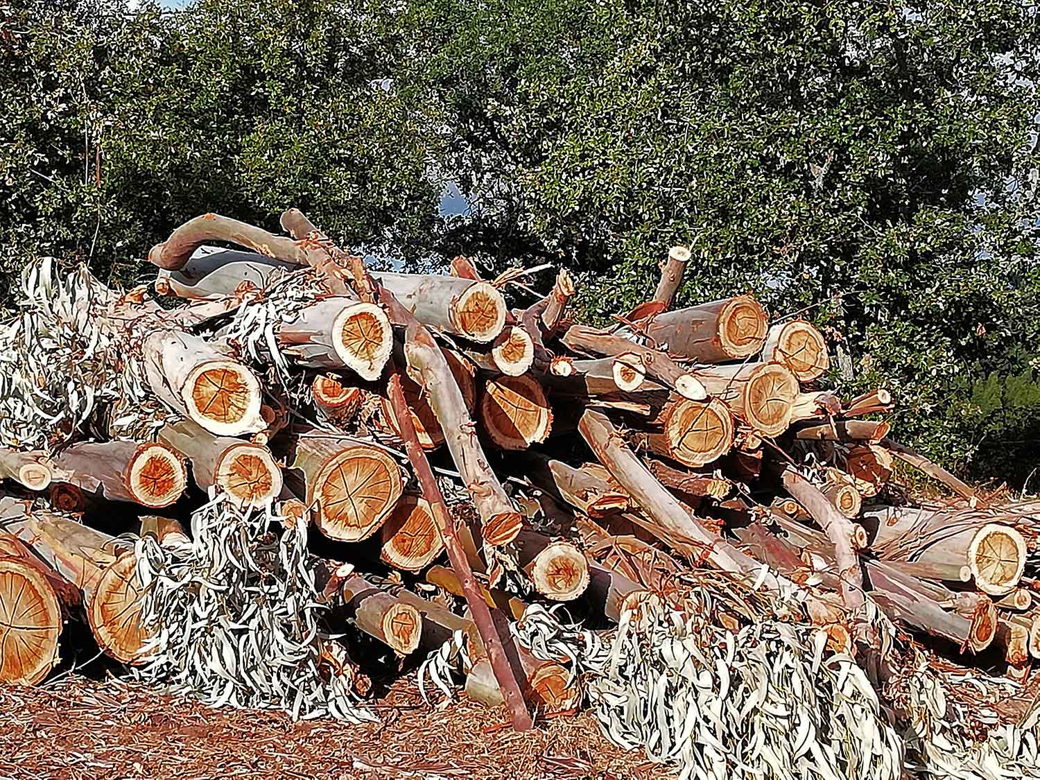Zelf hadden we al een flinke houtvoorraad, die nu voor de deur te wachten staat om opgehaald te worden (ja, de grap met het bos hout is gauw gemaakt!). Maar langs het weggetje, waar we ’s ochtends de honden uitlaten, staat een grote voorraad. Daar kunnen wij niet tegenop. En het dubbele of misschien zelfs wel meer is al met een grote vrachtwagen weggereden. Geen idee waar al dat hout vandaan komt, want we kunnen niets zien in de directe omgeving waar gekapt is. Het moet dus wel van iets verder uit het dal komen, dus dat is nog een flink gesleep geweest met die stammen. Ook in het dal zie je niets van gekapte bomen. Het mysterie van het gekapte bos! Uit de kranten hebben we begrepen dat de Portugese regering eigenaar van land gaat vergoeden als ze voortijdig de eucalyptussen weghalen. Het is alweer bijna twee weken kurkdroog en met de harde wind en de zon zijn de omstandigheden zodanig dat een klein vuurtje makkelijk een grote wordt. Er zijn in Portugal altijd wel branden, over het algemeen snel onder controle, maar de combinatie eucalyptus, hete zon, harde wind en langdurige droogte kan het wel eens gevaarlijk maken. Op dit moment brandt het bij Tomar en Vila Real, maar als gezegd, onder controle.