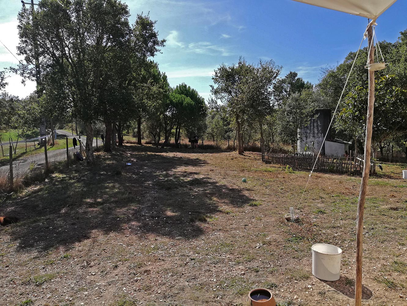 Kijk rustig rond op het plaatje want er zijn zat details: de voederbakken van de honden, de bal van Karma die we af en toe vullen met brokjes om haar lekker bezig te houden, als je goed kijkt zie je van alles. Misschien moeten wel een legpuzzel hier van maken, van 6000 stukjes of zo.