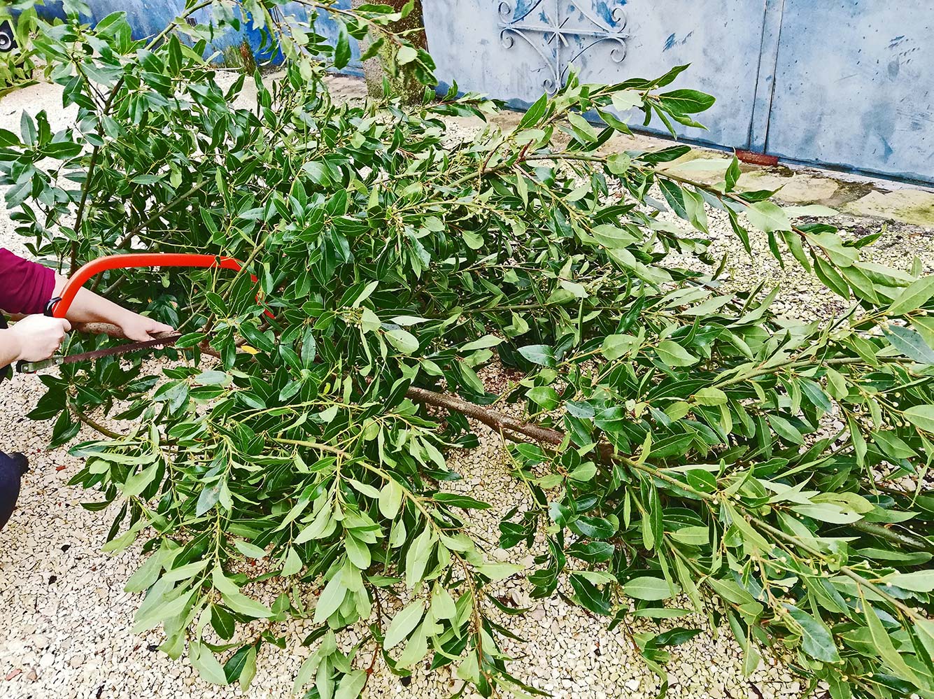 Langs het weggetje staat een immense laurier. Het is ongelooflijk te bedenken dat je in Nederland voor een paar blaadjes in een zakje een paar euro moet betalen, terwijl hier die enorme struik staat. We hebben er een paar flinke takken vanaf gehaald. eigenlijk moet er nog veel meer vanaf, om de struik een beetje hanteerbaar te maken, hij is nu bijna vijf meter hoog. Maar dat is allemaal voorjaarswerk. Voorlopig zijn we ons aan het voorbereiden op de kerst. Van de takken die we van de laurier gezaagd hebben, maken we een mooie kerstboom. Vorig jaar hadden we ook al zoiets maar dit wordt echt laurierkerstboom 2.0! De lange takken zetten we rechtop in een soort van piramide en de vorm van een kerstboom maken we erin door kortere takken er tussen te steken. De boom blijft nog wel een dag kaal, want morgen komt Marijn, en voor het echte kerstgevoel gaan we met zijn allen de boom optuigen met lampjes en kerstballen.