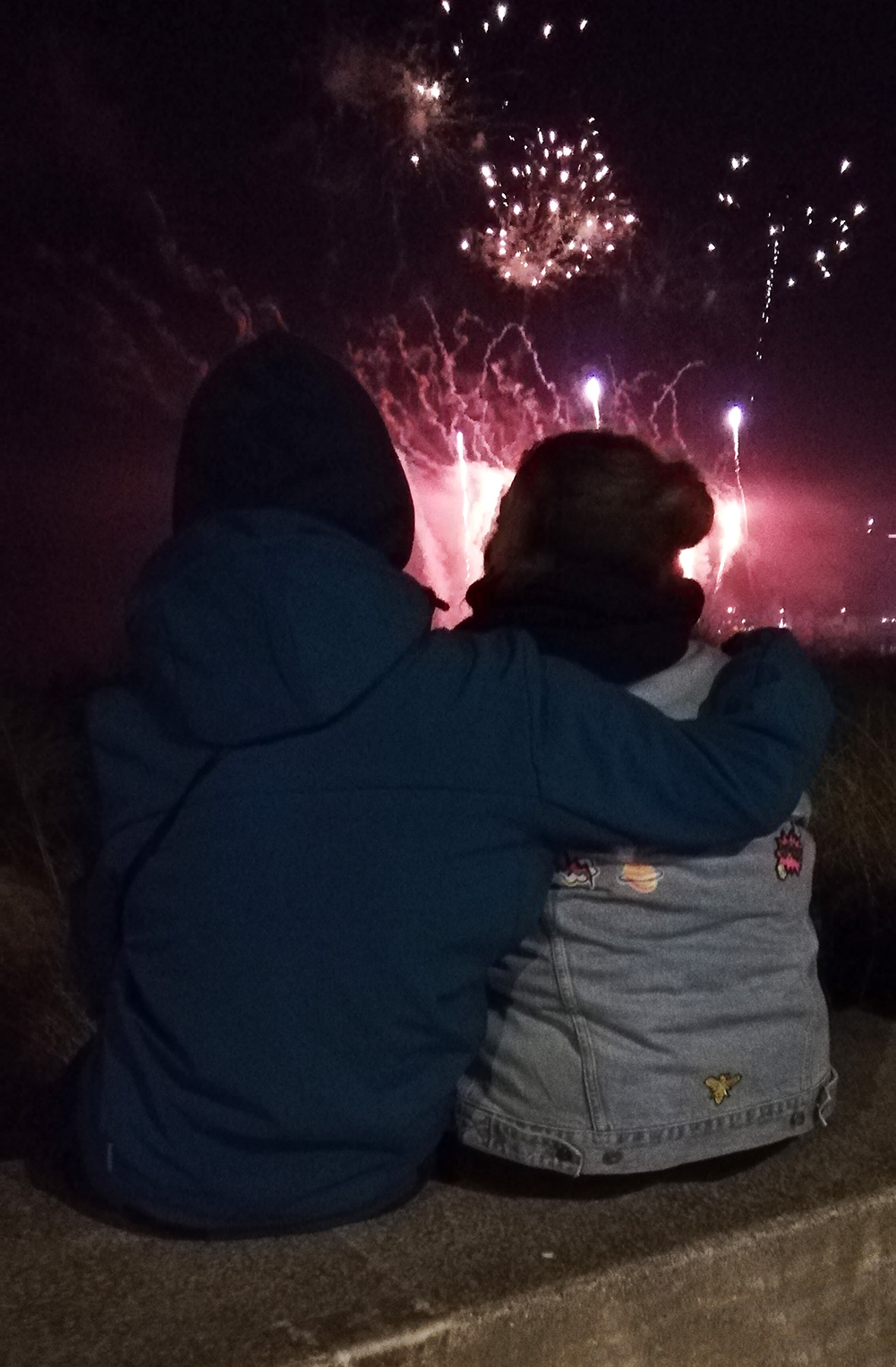 Wij hebben de jaarwisseling gevierd in São Martinho do Porto. Hier is de vuurwerkdiscussie absoluut niet aan de orde. Iedereen gaat naar een vuurwerkshow door de gemeente georganiseerd. Er is vuurwerk in Nazaré, in Caldas da Rainha, in Rio Maior en ongetwijfeld op nog veel meer plaatsen. Wij waren dus in São Martinho do Porto. Hier wordt het vuurwerk vanaf bootjes in de baai afgestoken en alles wordt bestuurd vanuit een centrale post op de boulevard. We waren niet naar het midden van de boulevard gegaan, maar zo’n beetje aan de zijkant. Op de rotsen aan de overkant van de baai wordt met laser de tijd afgeteld naar middernacht en via de luidsprekers wordt hard meegeteld. En daarna genieten van het mooie vuurwerk. Op de foto zie je Amber en Marijn gearmd ernaar kijken. Een mooi begin van het nieuwe jaar.
