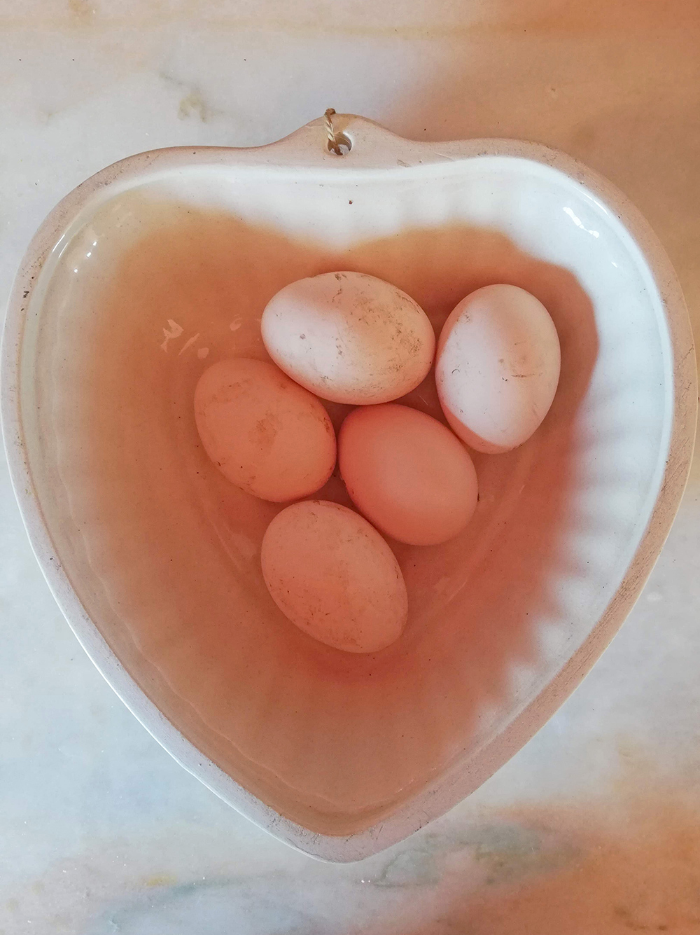En in ene dient het voorjaar zich aan. Het is 20°C buiten, de zon schijnt, het waait bijna niet. En de kippen zijn weer aan het leggen geslagen. Er lagen wel vijf eieren in het nest vanochtend. Waarschijnlijk gisteren al twee, maar toen hebben we niet gekeken. Dat betekent dat alle drie de hennen, Branca de Neve, Mortícia en Pinóquia, aan het leggen zijn. Dan is de voorraad eieren gauw aangevuld!
