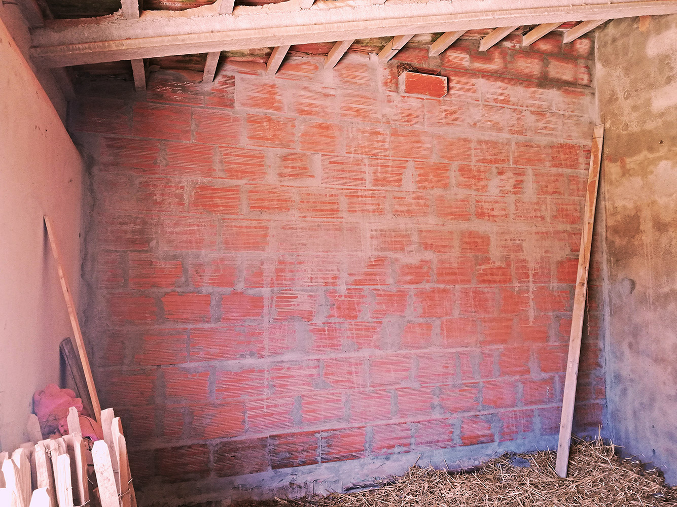 De muur is klaar. En we zijn best trots. Nooit eerder een muur gemetseld en dan nog een lastige ook met al die dakspanten. Fernando onze benedenbuurman gaf zijn complimenten toen hij de muur zag. En we zijn er blij mee, want nu kunnen we verder met de ruimte als schuur werkplaats in te richten. Dat duurt nog wel even, want er moet nogal wat gebeuren, maar langzamerhand komen we er wel. Fernando heeft ook een kennis die nu in Vila Franca de Xira werkt, dat is vlak bij Lissabon, en die het heen en weer reizen wel zat is. Hij zoekt werk in de buurt en volgens Fernando is het een klussenman die alles kan. Nou we hebben heel wat stucwerk, inclusief de net gemetselde muur. De hele buitenmuur langs het terrein moet gedaan worden aan twee kanten, dus hij kan zijn hart ophalen.