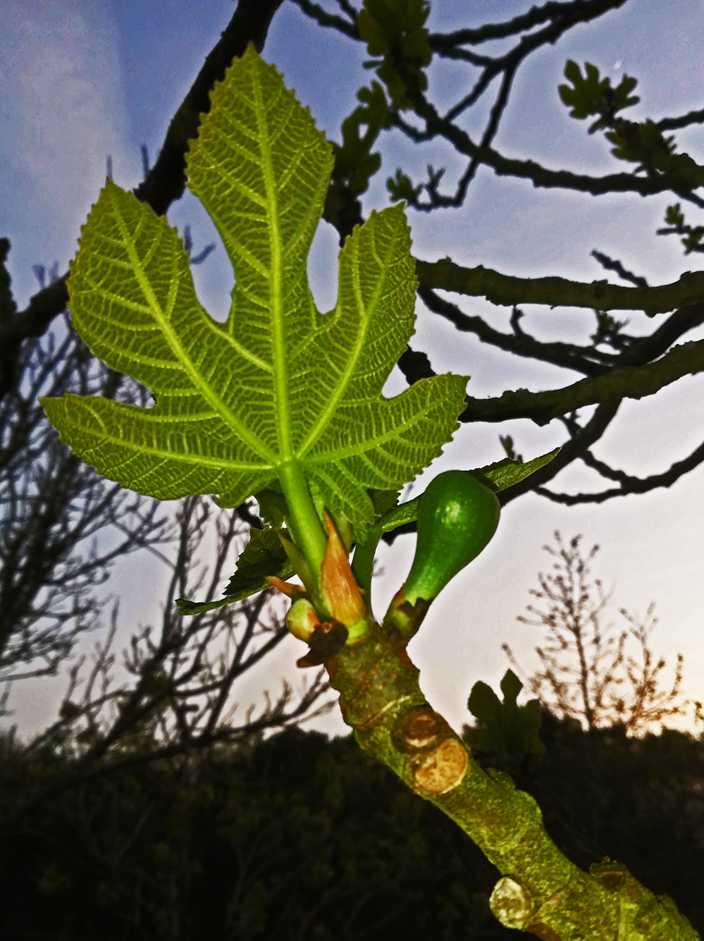 Alles begint klein. De vijgenboom heeft een aparte manier van vruchten maken. We hebben ons laten vertellen dat de vijg zelf eigenlijk niet de vrucht maar de bloem is. Je zou dus kunnen zeggen dat de vijgenboom in bloei staat. Aan het uiteinde van de takken komen nieuwe blaadjes en vlakbij ontstaan kleine vijgjes. Ze beginnen minimaal, en ze zijn nu ongeveer een centimeter groot.