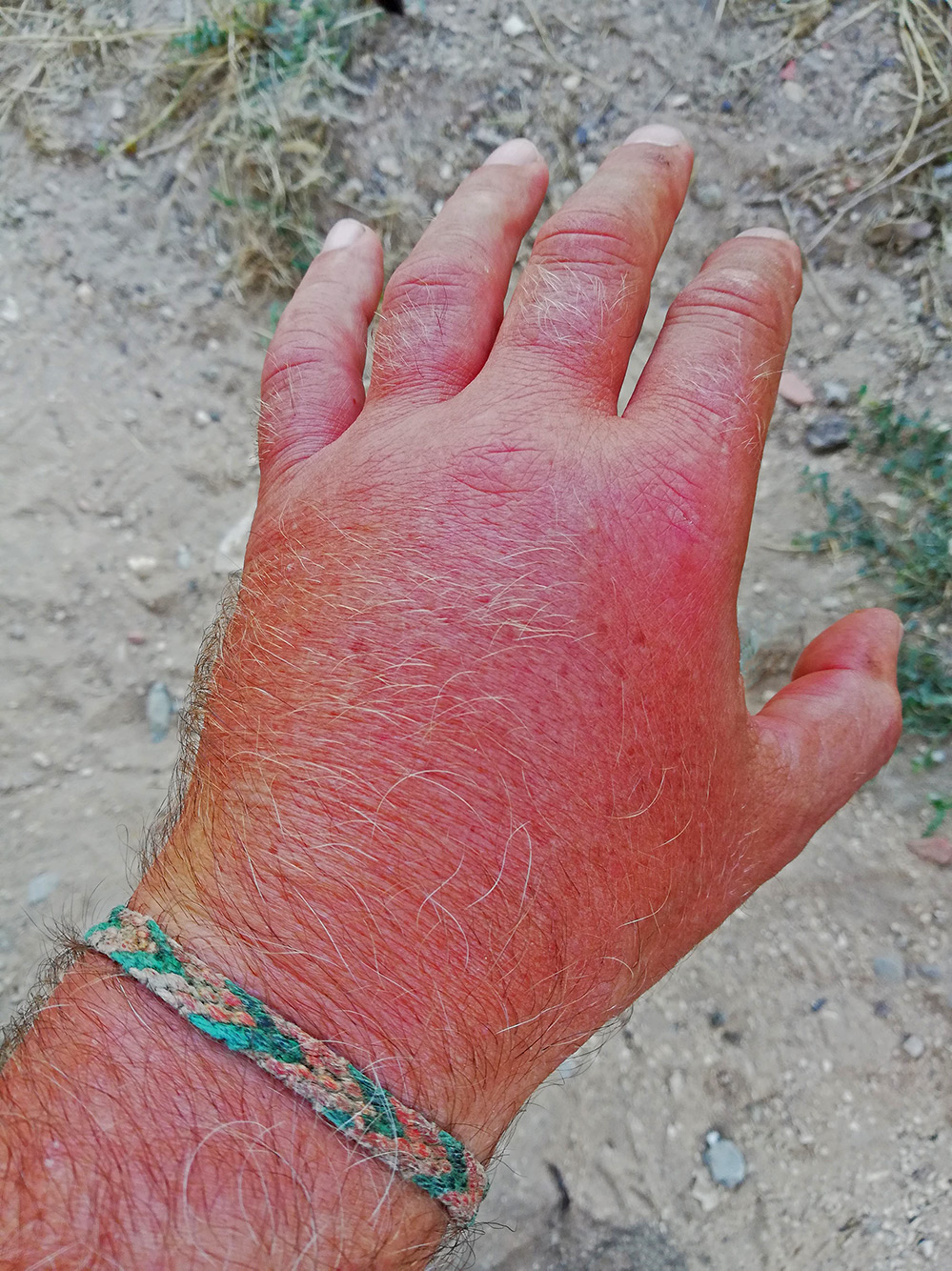 HEY Manus, ga jij als dit een reactie is op je hand even een Atropinepen regelen via je huisarts.. Je moet er niet aan denken wat de gevolgen zijn als dit in je gezicht/nek gebeurt... Ik heb het gezien bij mijn vader: it ain't pretty.. En de arts in het ziekenhuis werd er pislink over dat je hier niet te licht over moest denken.