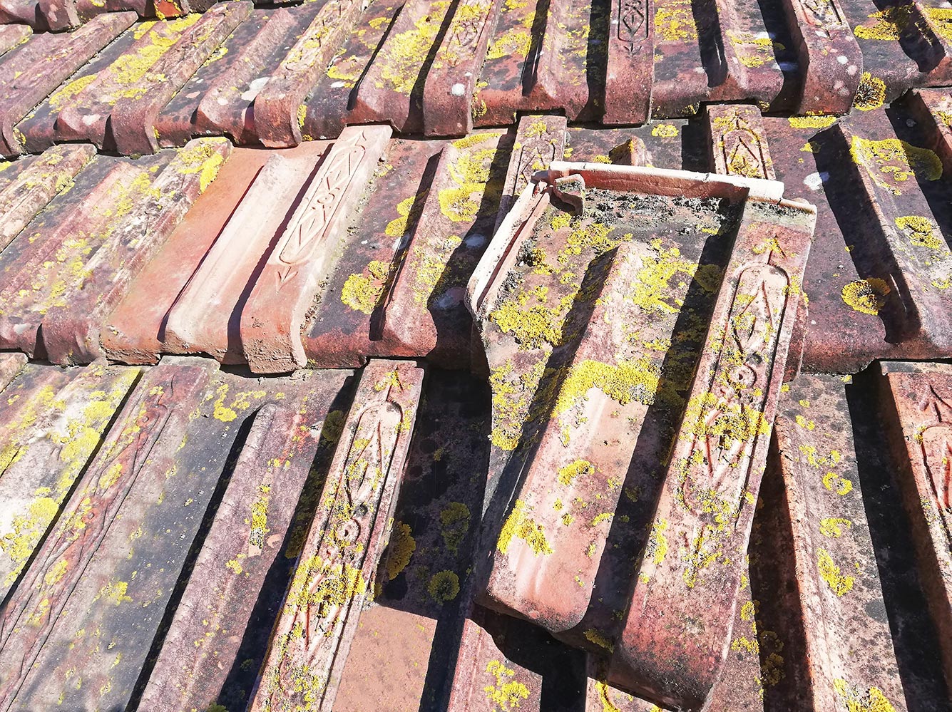 We hebben er nooit wat van gemerkt, maar in de nieuwe schuur lekte het. Het was niet zo erg want onder het afdak was gewoon grond, die van zichzelf toch al vochtig is, als het dan regent dan komen er gewoon wat druppels bij. Nu de vloer is gelegd én het regent flink dan vormen die paar druppels al gauw een flinke plas en alles wat op die plek op de grond staat wordt kleddernat.  Gelukkig waren onze vorige bewoners ruimhartig en hadden ze heel wat dakpannen laten liggen. De meeste stuk of gebarsten, die hebben het gehaald tot een nieuw leven als padbedekking. De pannen die nog helemaal goed waren hebben we ergens netjes opgestapeld en dat kwam nu mooi van pas. De gebarsten pan konden we daarom makkelijk vervangen door een gaaf exemplaar. Nou ja makkelijk, na wat acrobatische toeren op het dak.  ’t Ziet er weer mooi uit. ’t Is vreemd, maar nu kijken we uit naar de volgende regenbui, niet dat we in ene gek op regen zijn, maar om te zien of de lekkage ook weg is.