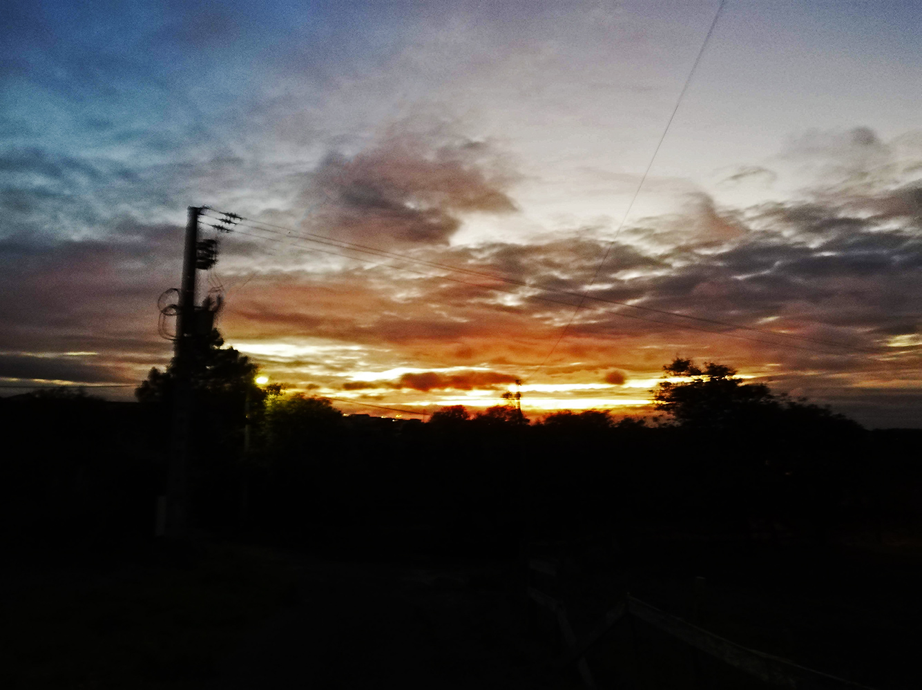 Net als in Nederland is ook in Portugal de klok teruggezet afgelopen weekend. Het betekent dat het vroeger licht wordt maar zeker ook vroeger donker. De wandeling met de honden, pardon met de hond, Karma, begint nu vaak terwijl het net een beetje begint te schemeren en dat komt nu zo uit dat we als we het zicht hebben op Casal da Marinha aan de andere kant van het dal de zon net ondergegaan is. Als het dan ook net een dag is met wat bewolking hier en daar dan geeft dat mooie effecten.