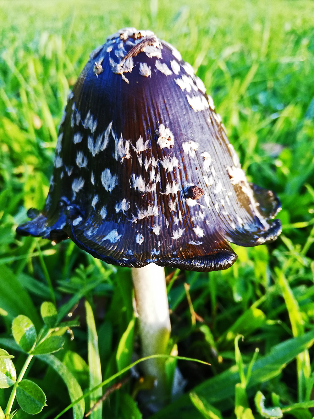 Onderweg komen we ook altijd wel weer een bijzondere plant of zo tegen. Vandaag deze paddenstoel. Vorige jaren nooit gezien, maar nu staan er een paar op de splitsing tussen Rua do Lumião en Estrada do Lumião. Google Lens noemt het de Spechtinktzwam, want als de paddenstoel wat groter wordt, dan scheurt het vlies dat er eerst omheen zit en die laat dan stippen achter die kennelijk doen denken aan een specht. Doordat er op dat stukje nooit, of in ieder geval zelden, iemand komt, blijft het allemaal mooi onaangetast en blijven de paddenstoelen staan tot ze uit zichzelf verdwijnen of verregenen.