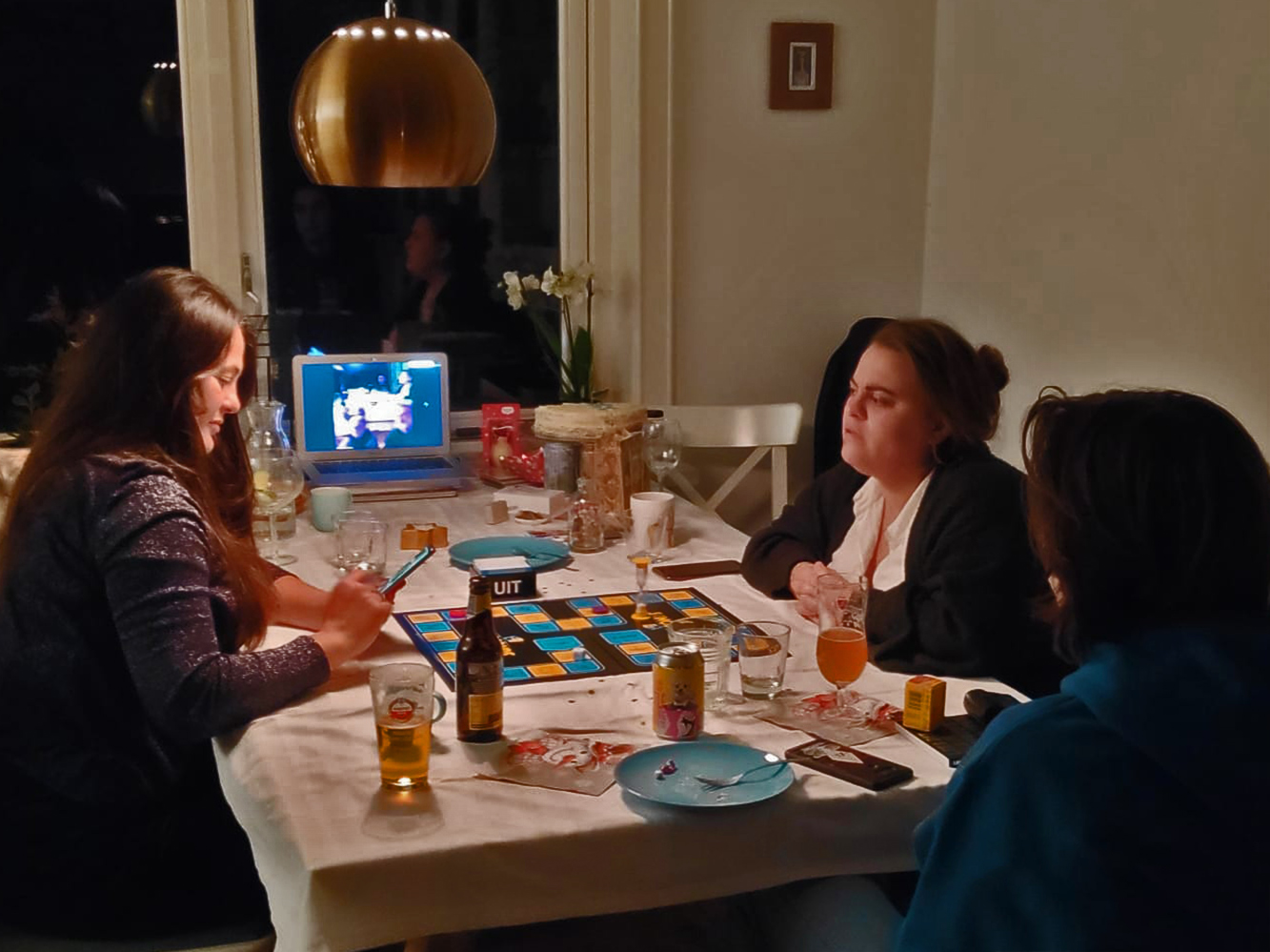 Zo ver weg en toch dichtbij! Op Tweede Kerstdag besloten we spelletjesavond te doen met het thuisfront. Via het beeldscherm. Wij met zijn tweeën in Portugal en de anderen met zijn vieren in Nederland. 30 Seconds en later Pictionary. De kaartjes met opdrachten werden gefotografeerd en met WhatsApp verstuurd en de beeldverbinding maakte het allemaal heel dichtbij. De hapjes en de drankjes aan weerskanten ook goed geregeld en zo hadden we een prachtige spelletjesavond.