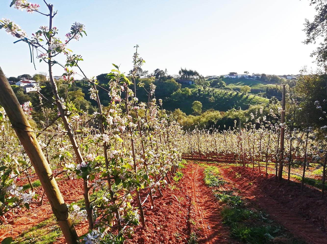’t Veld langs het weggetje staat vol met appelboompjes. En de boompjes bloeien voluit. Zo tegen de avond als de zon laag staat en de boompjes goed half tegen de zon in te zien zijn, is het een prachtig gezicht. Het veld met appelbomen gaat helemaal naar beneden, ’t dal in, en het bloeit en bloeit overal. Het is jammer dat het maar een paar dagen duurt, dan vallen de bloemen alweer af en gaan de appels groeien. Voorlopig genieten we nog van het stilleven dat we elke wandeling weer voorgeschoteld krijgen.