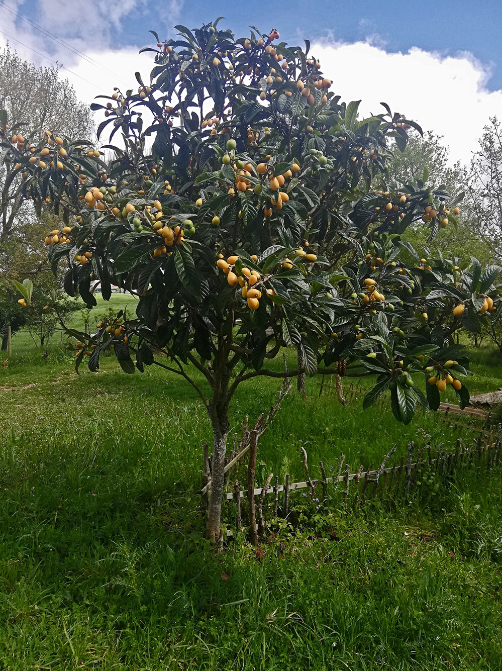 De boom met nespera’s zit stampvol met vruchten. Nespera’s heten in het Nederlands loquats, alsof dat bekender klinkt. De boom heeft waarschijnlijk zo veel vruchten, doordat het in het vroege voorjaar veel geregend heeft en er veel water in de grond zit. De boom, de nespereira, vaart er wel bij. Het lijkt wel of onze boom het nog wat beter doet dan zijn soortgenoten, want menige Portugees die voor een wandelingetje langsloopt is onder de indruk van de hoeveelheid vruchten die er hangen. Ze zien er al prachtig uit, maar we moeten nog wachten tot eind april en misschien wel tot eind mei voor de vruchten lekker om te eten zijn. Je kunt ze nu wel eten, maar ze zijn nog niet zoet genoeg.