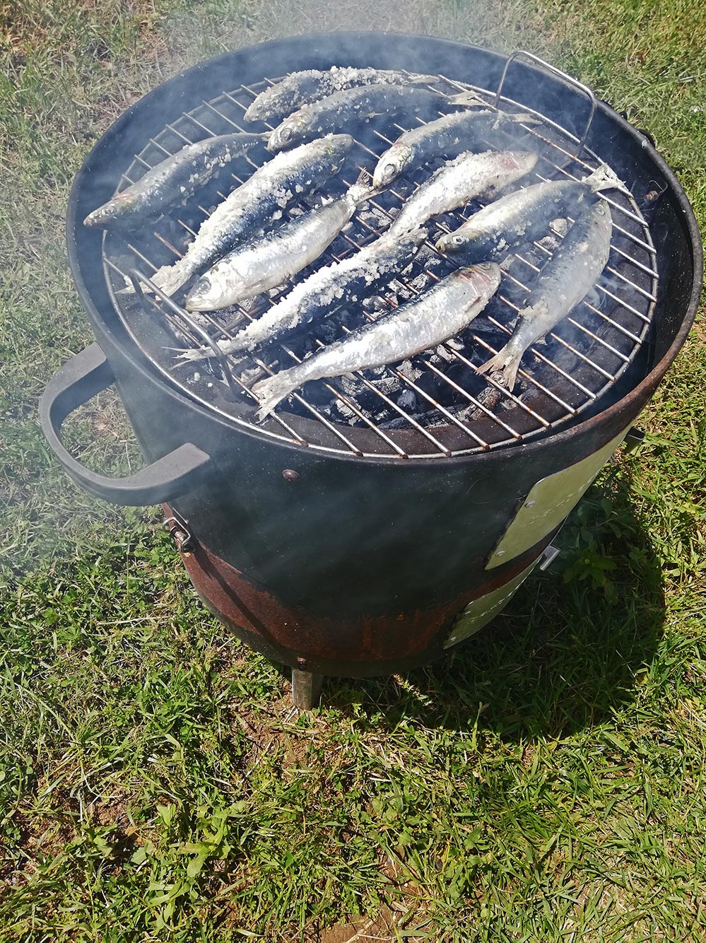 Een verschrikkelijk cliché, sardientjes in Portugal. Maar lekker! We zouden met de mannen die aan het huis bezig zijn vandaag een sardientjeslunch hebben, maar het hout waar ze op zitten te wachten is niet geleverd en dan kunnen ze niet zoveel doen. Waarschijnlijk zijn ze op een andere klus gezet want ze zijn ook niet komen opdagen. Geen nood, dan eten we de sardientjes zelf op.