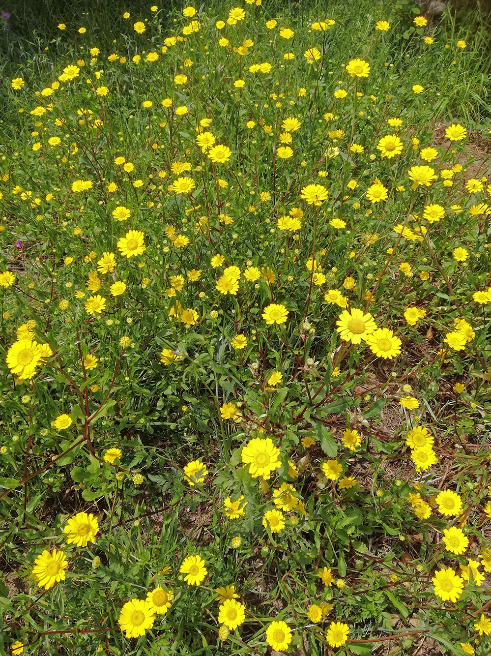Het lijkt wel of het dit jaar het jaar van de gele bloem is. Overal zie je de gele ganzenbloem in grote groepen, andere jaren zie je die ook wel, maar dan af en toe een paar. Nu zie je hele velden vol met gele gloed. Ook bij ons op het terrein staan er talloze. Er zijn stukken die we niet maaien en niet kort houden en daar slaat de plant toe. Andere gele bloeiers zie je ook overal. De gele ganzenbloem dus, maar ook koolzaad. Koolzaad heeft het ook erg naar z’n zin, hier en daar staat het meer dan twee meter hoog. Gele brem zie je ook veel, maar wat minder uitbundig. De gele klaver zie je anders ook heel veel, maar nu even niet. Die bloeit liever wat vroeger in het jaar kennelijk. Nu we elke dag zon hebben komt de gele kleur helemaal goed uit.