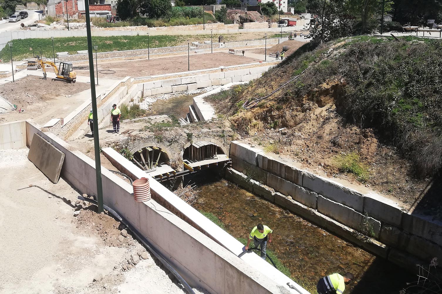 De rivier is er ook nog steeds, zij het in afgeslankte vorm.