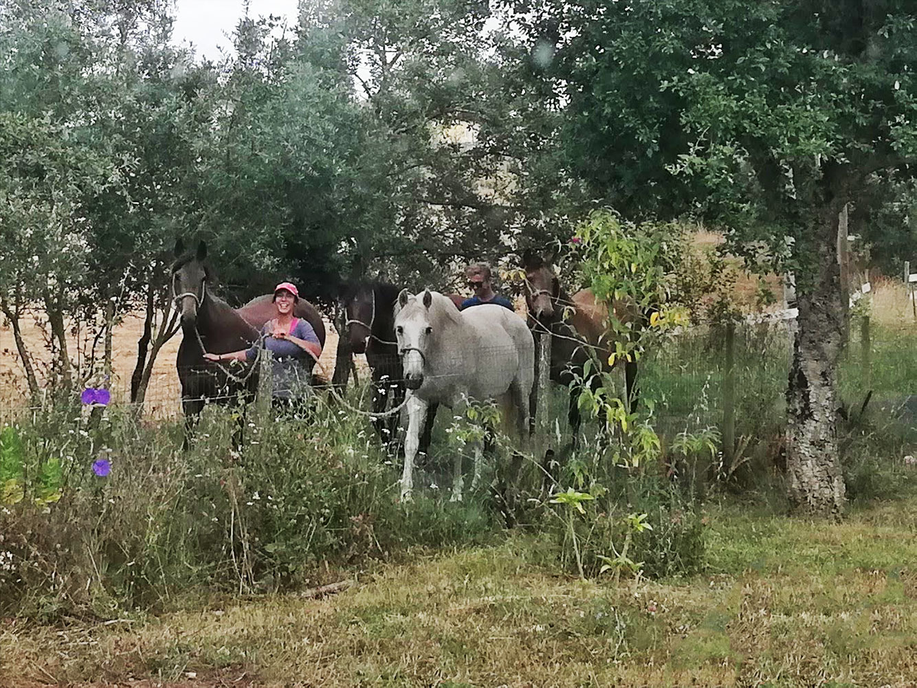 Behalve dan deze wandelende paarden. ’t Is heel bijzonder, we zien Senhor Fonseca wel eens langsrijden met een trailer met paarden erin, die hij dan naar zijn wei brengt. Deze paarden kwamen, onder begeleiding weliswaar, langswandelen, heel rustig allemaal, de begeleidster liep erbij te glimlachen, de begeleider erachter was meer bezig met zijn telefoon. En achter de drie paarden reed Senhor Fonseca in zijn pick-up. Stapvoets natuurlijk. De honden uit hun dak, maar de paarden trokken zich er niets van aan en stapten rustig door. Ze gingen niet van de ene wei naar de andere wei. Geen idee waar de wandeling is begonnen.