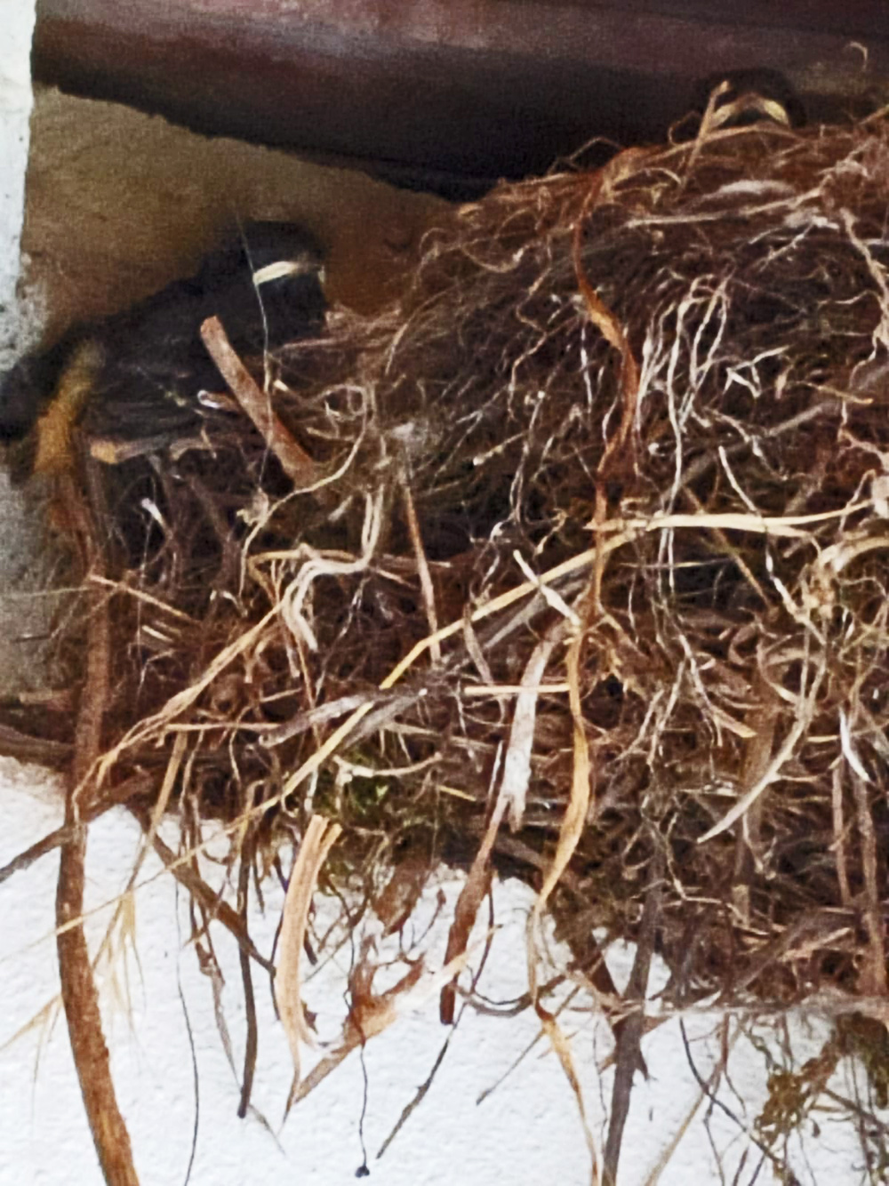 Het is onverwacht maar het lijkt of de jongen alweer zover zijn dat ze uit gaan vliegen. De ouders hebben het nog vreselijk druk met voeren van de kleintjes, en die zijn zelf de boel aan het verkennen. De meest brutale zit op de rand van het nest en het zal niet lang meer duren voor hij zijn vleugels gaat uitslaan. Het is het meest kritieke moment, als het vliegen nog niet lukt en ze belanden op de grond dan hebben ze een heel onzekere toekomst. We proberen de katten uit de buurt te houden, maar dat lukt niet de hele tijd. De vorige lichting is helemaal goed gegaan, we hebben in ieder geval niets gevonden dat lijkt op een kattenaanval. Geen losse veertjes of verdwaalde lichaamsdelen.