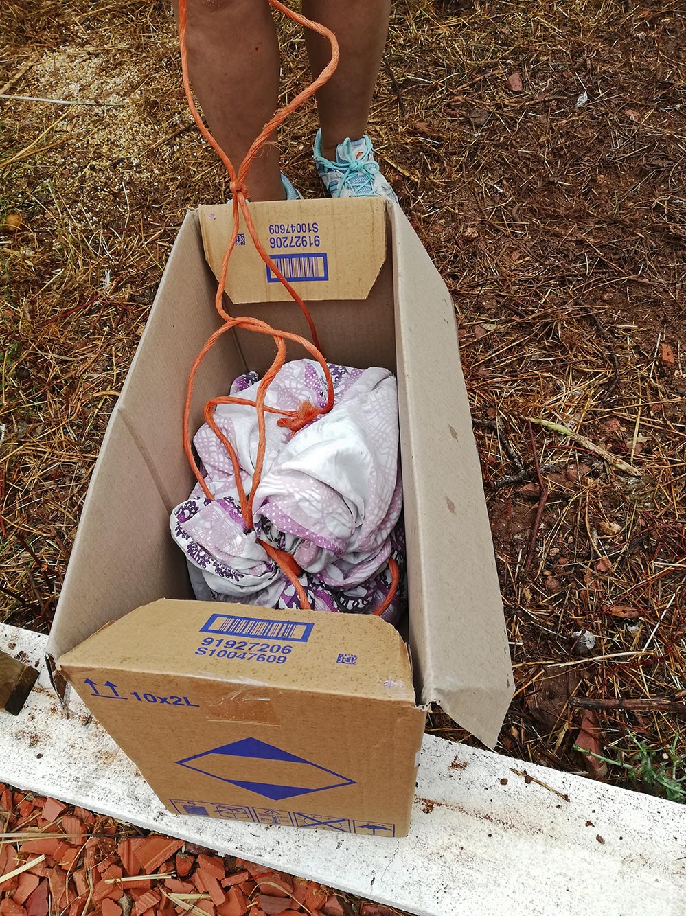 Senhor Barcelos heeft ons verlaten. Hij leeft hoor, geen probleem. Voor het vervoer zit hij in een kussensloop om ervoor te zorgen dat hij niet uit de doos klimt. Voor ons is het een hele toer om hem te vangen, maar Maria, de nieuwe eigenaresse had hem zo te pakken. ’n Snelle graai naar één van de poten, ondersteboven houden en gauw de andere poot erbij en het dier is weerloos.