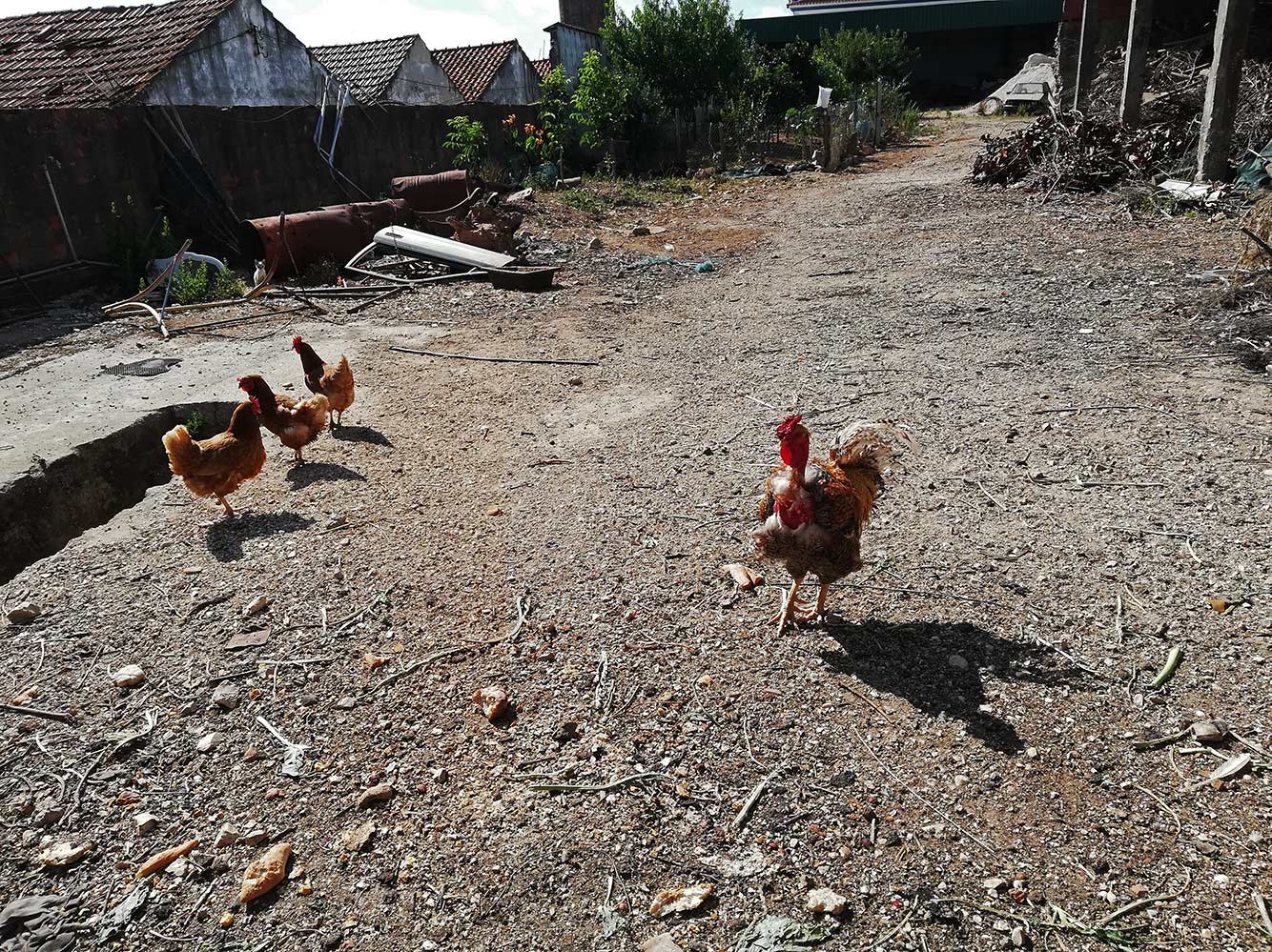 Even op bezoek bij Senhor Barcelos, toch even kijken hoe het met hem gaat. Nou hij heeft het best naar z’n zin. Genoeg ruimte, genoeg kippen om hem heen. Hij krijgt genoeg te eten. ’t Grappige is dat Maria en José, de nieuwe eigenaren, hem een tijdje kwijt waren. Hij had zich verstopt tussen een paar strobalen en kon zichzelf er niet meer uit krijgen. ’t Duurde even voor ze hem gevonden hadden, maar hij is er weer uit en hij lijkt er niet erg van onder de indruk te zijn. Het leek of hij onze stemmen herkende toen we bij het hek stonden te praten, maar dat kan ook verbeelding zijn. Hij heeft het in ieder geval goed.