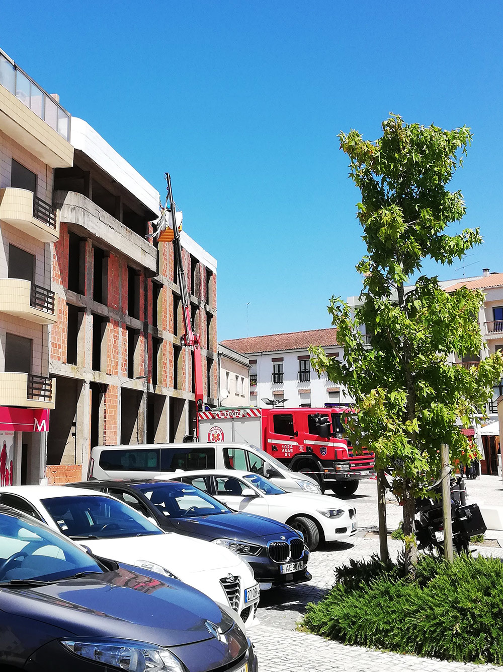 Er gebeuren wonderlijke dingen in Benedita. Het gebouw in aanbouw naast e Millennium Bank, staat er al zo’n tien jaar hetzelfde bij. Er gebeurt niets mee. Nu ineens wordt de bovenbalk, en misschien wel meer, wit geschilderd. Het schilderbedrijf dat hiervoor was aangesteld had wel een wagentje met een hoogwerker meegenomen, maar dat was bij lange na niet genoeg om bij het bovenste stuk te komen. De brandweer moest eraan te pas komen. Twee bandweerwagens nog wel.