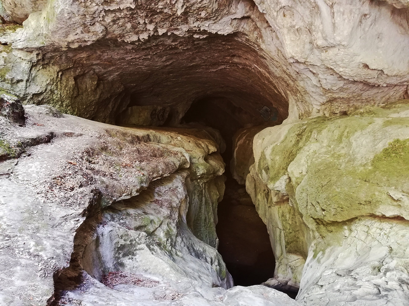In de rotsen waar het doorheen loopt zie je diepe sporen uitgesleten door het water. Volgens de beschrijving moet het er al gestroomd hebben in de midden Jura, pakweg zo’n 170 miljoen jaar geleden. De uitgesleten tunnel huisvest nu vleermuizen, je kunt er misschien doorheen lopen, maar dat hebben we niet gedaan.