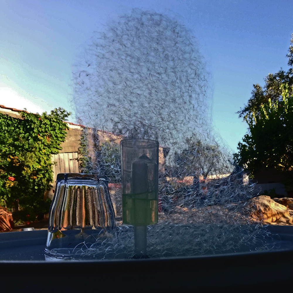 Van de appels die we gekregen hebben van Ricardo hebben we allemaal kleine stukjes gemaakt. Een beetje voorverwarmd met heel wat suiker, af laten koelen en gist erbij. En dan, hup, in het gistvat. Het gistvat wordt afgesloten met een waterslot, dan kan er geen zuurstof bij komen, maar het koolzuurgas dat door de gist wordt gemaakt, kan wel ontsnappen. In het water van het watervat gaat een klein beetje afwasmiddel, om te voorkomen dat er schimmels in ontstaan.