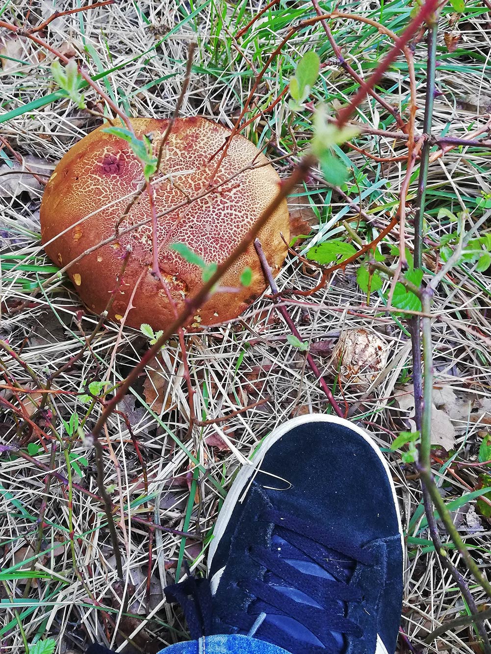 In het kurkeikenbos achter ons terrein komt nooit iemand. Alleen wij en de geiten. We zetten de geiten er ’s ochtends neer en aan het eind van de dag halen we ze weer. De geiten zitten aan een touw van vijf meter, in theorie kunnen ze een cirkel bestrijken van tien meter doorsnede. Meestal lukt dat niet, ze lopen zich vast aan een boom of een stronk hier of daar. Hele stukken bos zijn daarom ongerept en daar doen de paddenstoelen het uitstekend. Ze kunnen erg groot worden. De bruine op de foto zie je tamelijk veel.