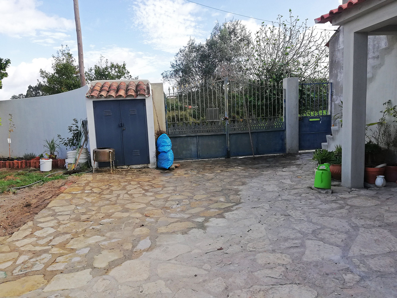 Het is ongelooflijk maar waar. We kunnen de stenen weer zien van het pleintje. De betonmolen is eerder al door Celso weggehaald en nu is de enorme berg zand door de twee Duitse vrijwilligers weggeschept en in het gat achter het huis verdwenen. Dat gat is nu volledig met zand gevuld dat mooi tussen het puin is gelopen. Even een tijdje laten rusten.