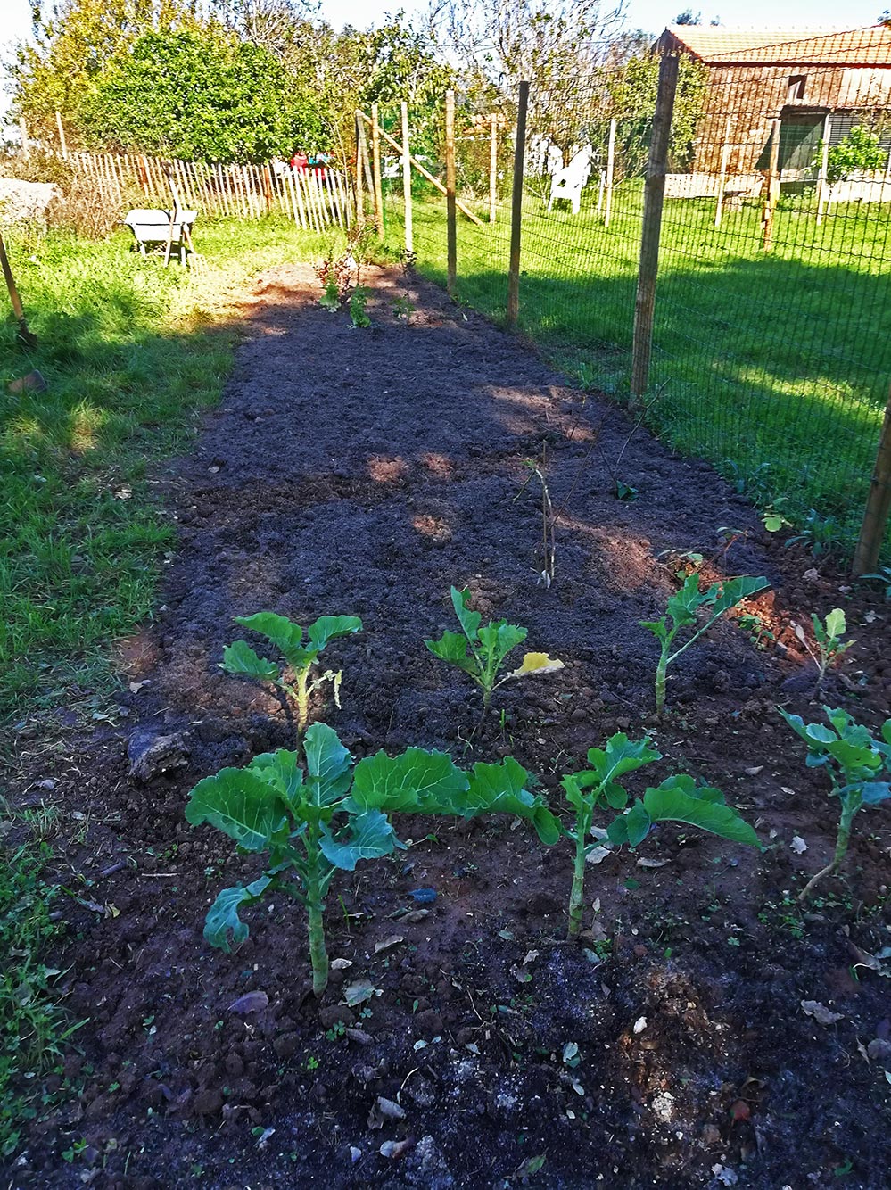 De moestuin begint vorm te krijgen. Door al het gedoe rond het dak en de kuil die we gegraven hebben, was het een beetje in het gedrang gekomen. Er lag al een tijd een hele berg tuinaarde en paardenmest, maar dat had nog niet zijn weg gevonden naar de horta. Nu met de nieuwe vrijwilligers Anna en Clemens, komt er flink schot in. Hanna en Viola waren al begonnen, maar die deden dat aan het eind van de dag als het andere werk zo’n beetje klaar was. Anne is met Amanda de hele dag bezig geweest om de grond open te krijgen en de aarde en de mest erop te leggen. Nu gaat het echt wat worden.