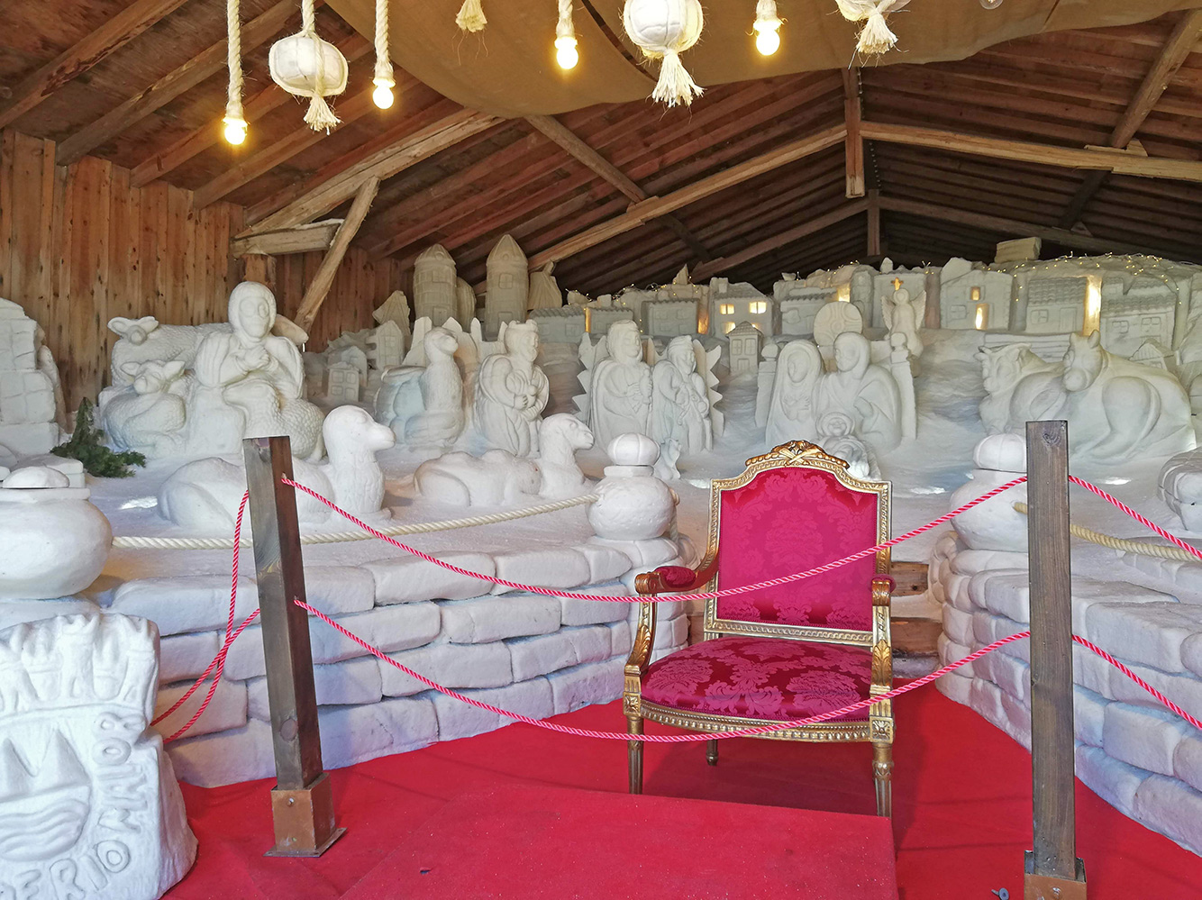 Tussen de bedrijven door nog even naar de Salinas geweest, de zoutmijnen van Rio Maior. Dat was wel gisteren, maar toch een leuke foto. Wat Sinterklaas bij ons doet, op een troon zitten en naar de kindertjes zwaaien, doet hier de Kerstman, Pai Natal heet hij hier. Hij was even weg, zodat we een mooi beeld van de kerststal in zout krijgen. Ze zijn er allemaal de kerstfiguren, ook de drie wijzen zijn er maar alvast. En geen gedoe met zwarte-pietdiscussies. Iedereen dezelfde kleur, want van zout.