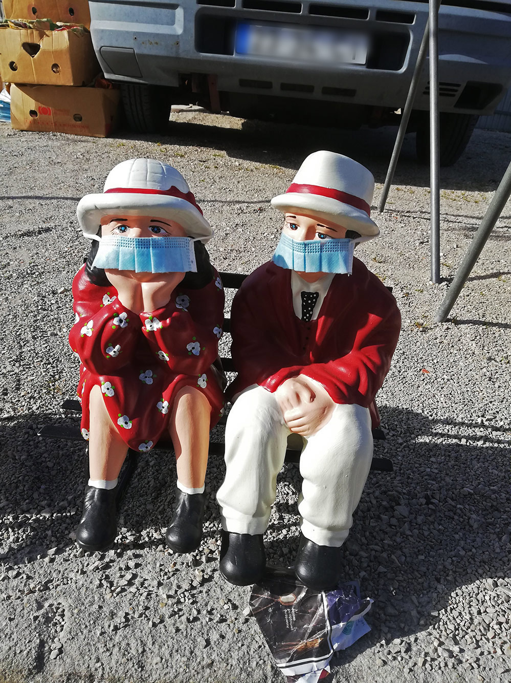 Nu is dat alleen als afstand houden van meer dan twee meter niet mogelijk. Op de Santana markt is het nog steeds niet verschrikkelijk druk, veel marktlui komen niet opdagen of vertrekken alweer vroeg als ze zien dat er weinig klandizie is. De hekken om de markt zijn weg en er wordt niet meer geteld hoeveel mensen er zijn. Ook is er geen politie meer die erop toeziet dat iedereen zijn handen ontsmet. De flesjes met ontsmetter staan er nog wel, maar ze worden lang niet meer door iedereen gebruikt. Mondkapjes zijn hier wel verplicht, het is druk genoeg om het moeilijk te maken om die twee meter afstand te bewaren. Zelfs de beeldjes die te koop staan aangeboden hebben mondkapjes.