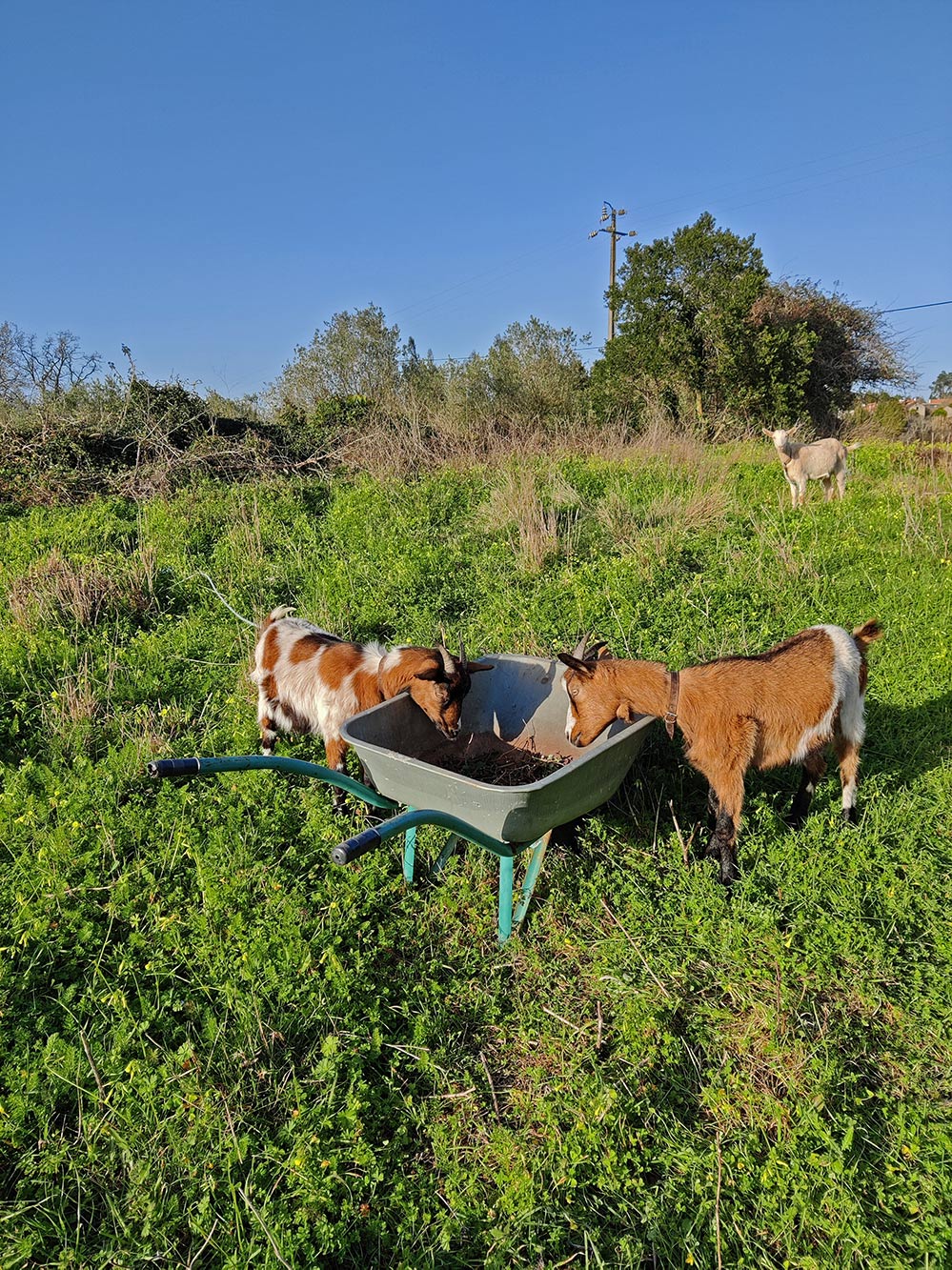 Gelukkig krijgen we hulp van Inês en Beatriz, die helpen de stukjes braam van de blaadjes af en ook de jonge scheuten worden door hen weggewerkt. Scheelt weer een hoop in het afvoeren.