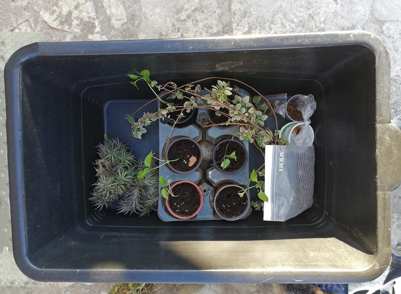 Een vliegende kraai vangt altijd wat, is het spreekwoord. Als je bij Betty bent krijg je altijd wat mee. Altijd wel een stekkie van het een of ander. Deze keer paprika, Portugees gras, lavendel. Het Portugese gras moet langzaam het gras vervangen dat bij ons op het terrein komt. Het Portugese gras is erg sterk en kan heel goed tegen droogte. Het gras dat wij hebben, overleeft ook wel, maar wordt erg geel in de droge periode. Het Portugese gras blijft groen, ook na lange droogte. Dus veel mooier om te zien.