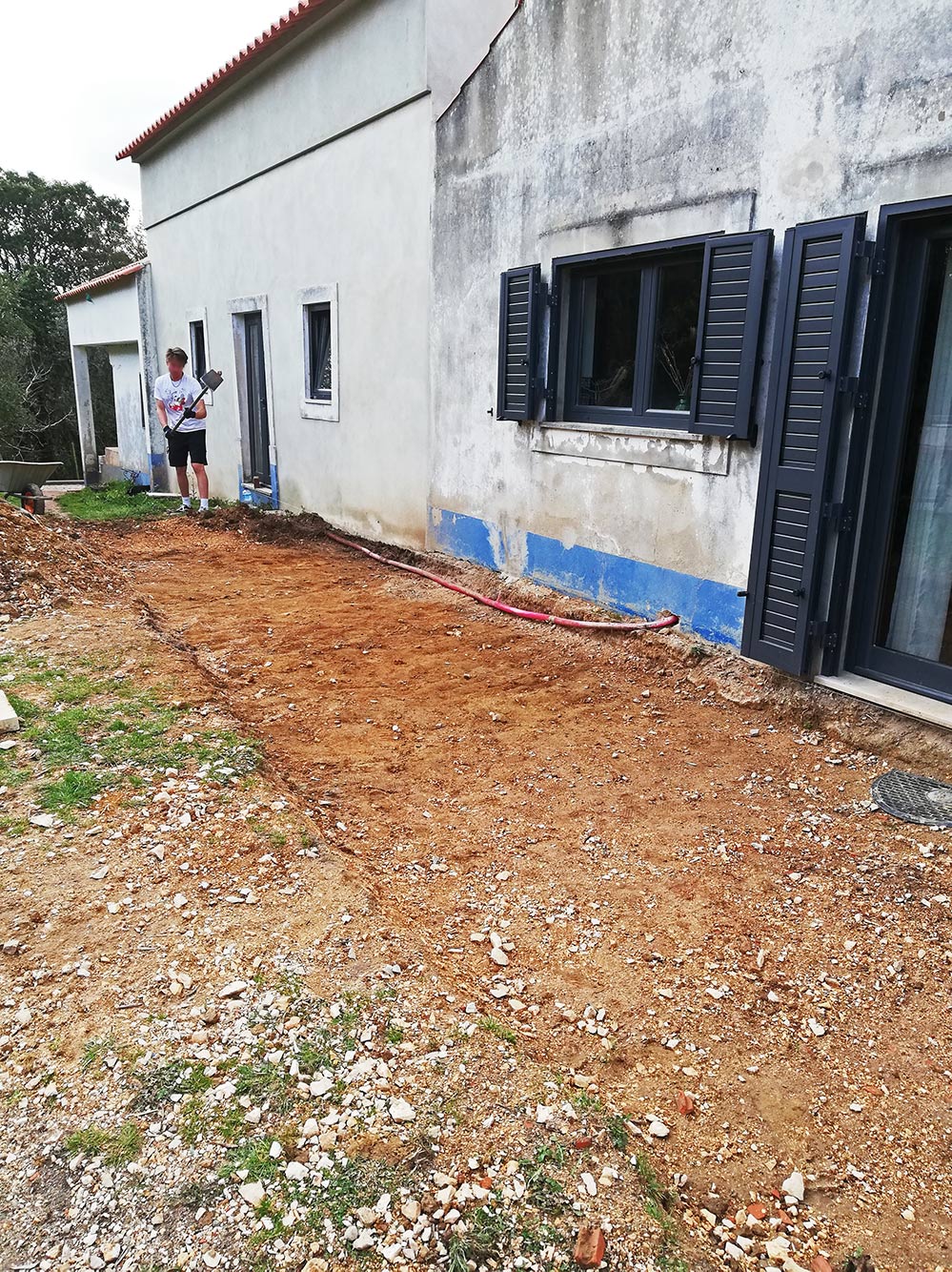 Hij houdt van lekker buffelen, Henri. Hij is inmiddels drie dagen bezig met afgraven van wat het terras moet worden. Zelf als het regent gaat hij lekker door. “Dan koel ik lekker af”, zegt hij.